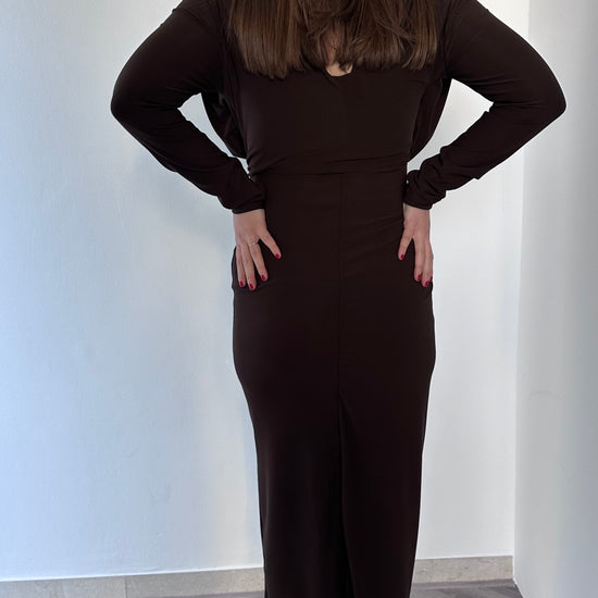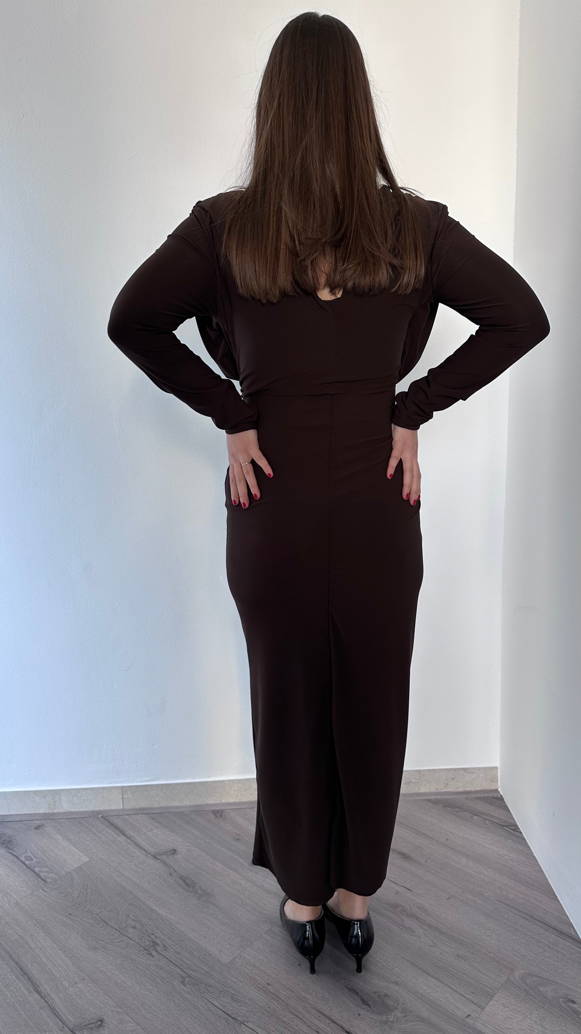 Esalta la tua eleganza con l'Abito Chic, un raffinato abito tubino lungo, perfetto per ogni occasione. Elasticizzato per adattarsi perfettamente alle tue forme, con una pratica zip nel retro e una morbidezza unica nella parte superiore. In taglia unica ma consigliato per le taglie 38-42.