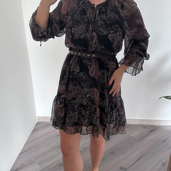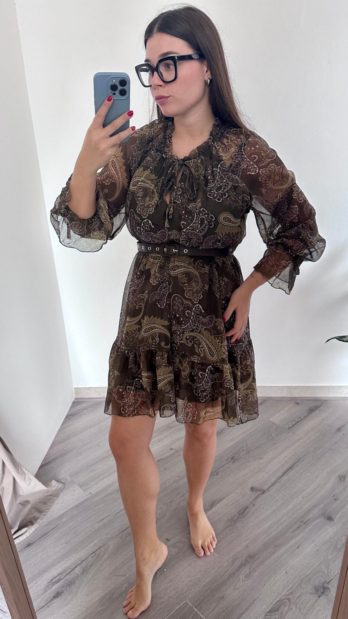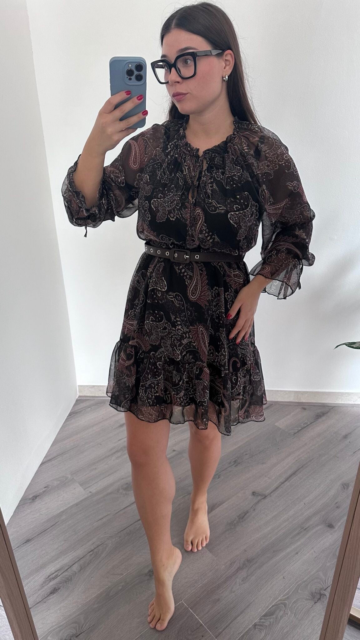Questo abito corto in fantasia è perfetto per ogni occasione. La taglia unica si adatta alle taglie 38-44, mentre il velato con sottoveste incorporata garantisce un look elegante. Inoltre, la cinturina inclusa offre un tocco di stile Boho sempre di tendenza.