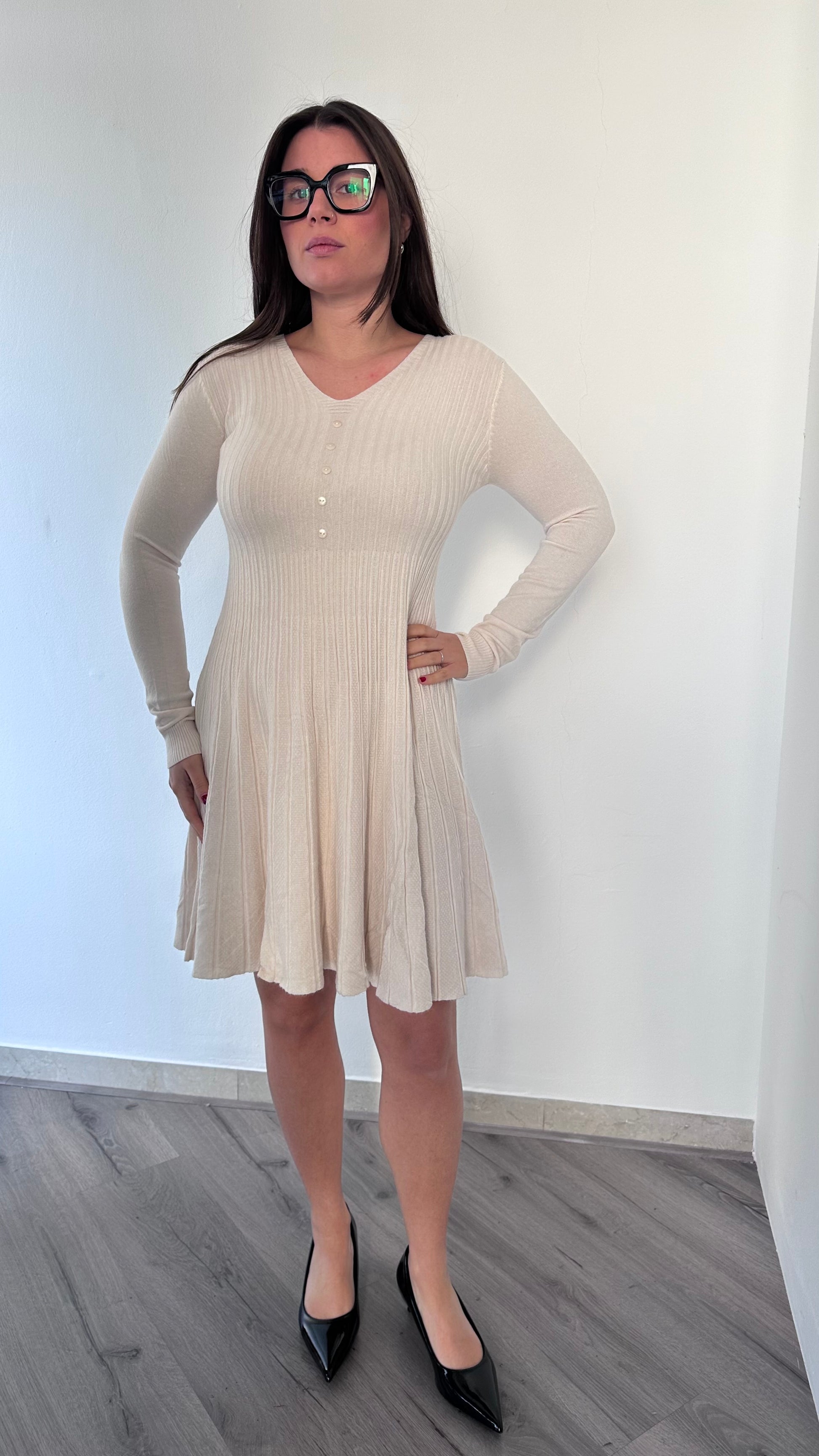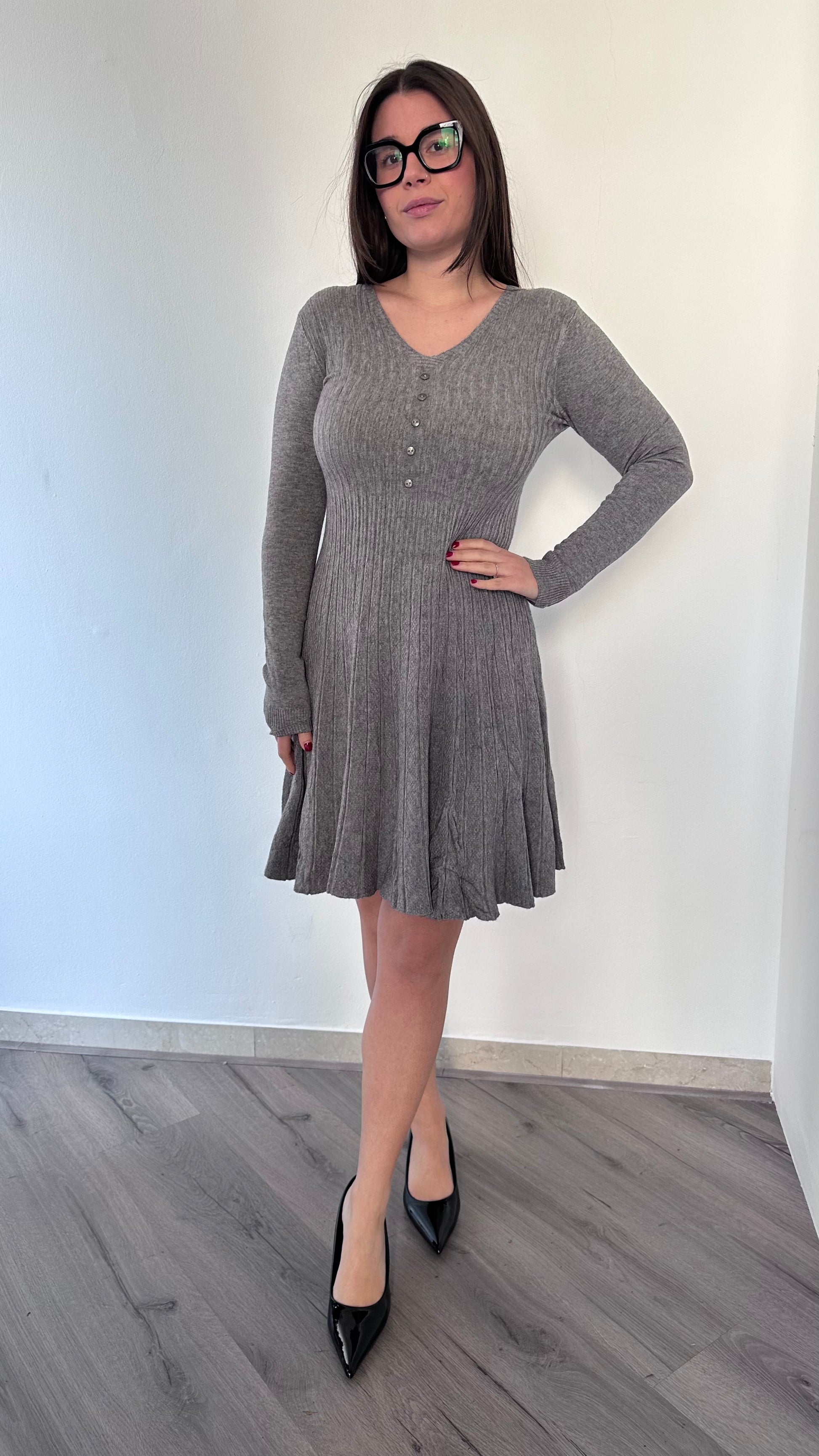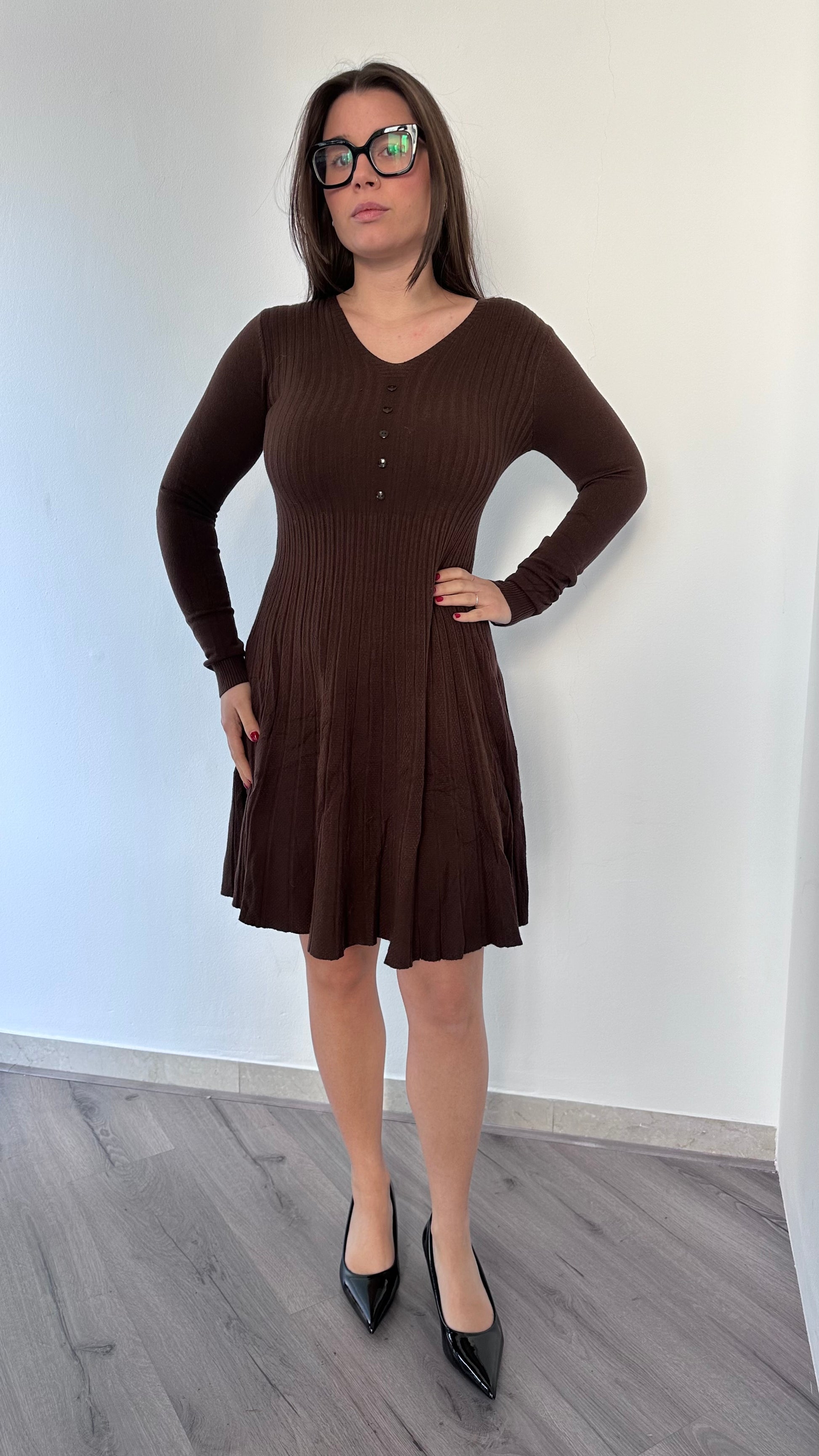 L'iconico abito Elisa svasato presenta un design elegante e femminile, adatto a taglie dalla 38 alla 44 grazie alla sua vestibilità elasticizzata. Con i suoi finti bottoncini e il 37% di viscosa, offre un'esperienza di comfort e stile, perfetto per ogni occasione.