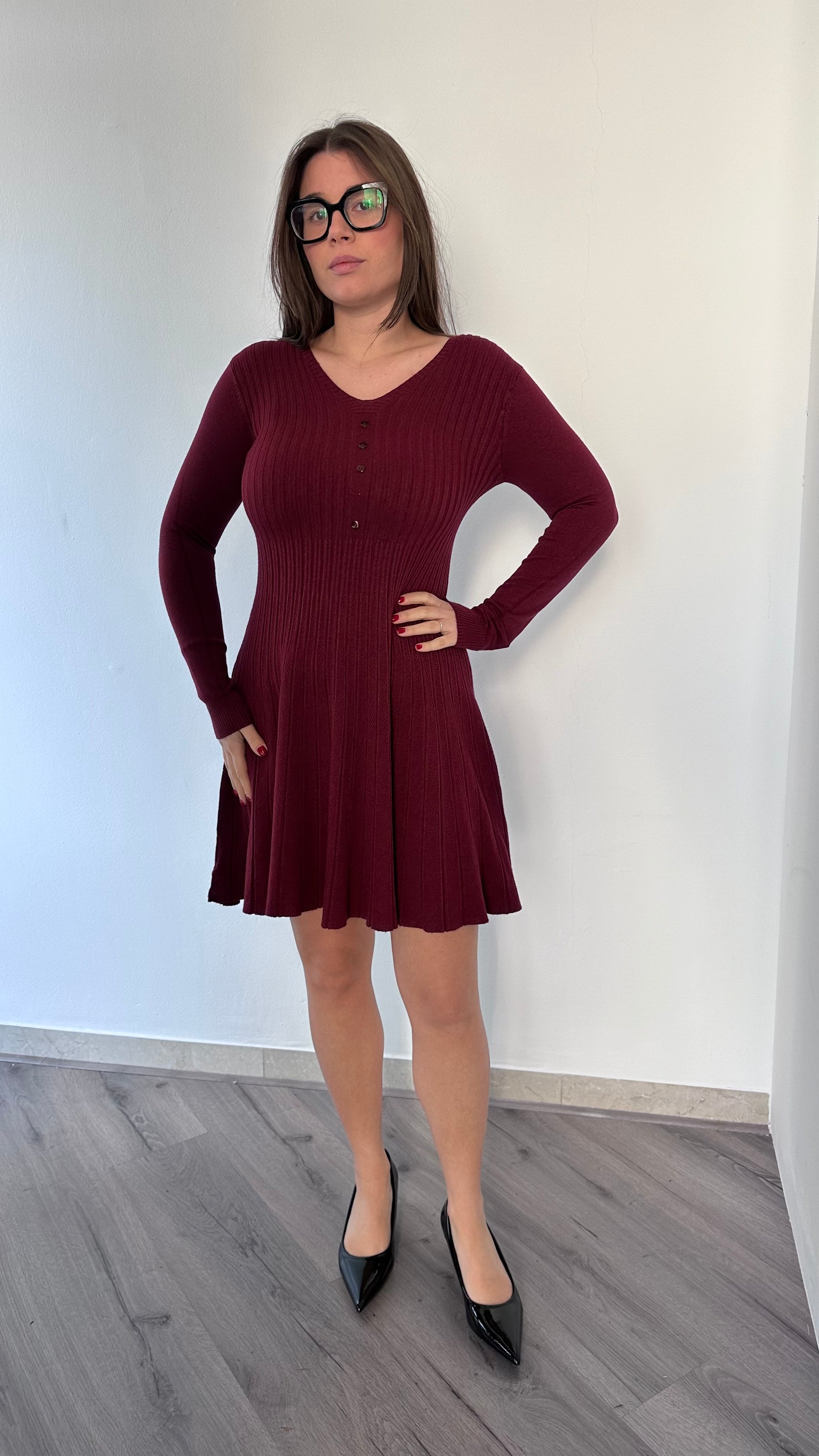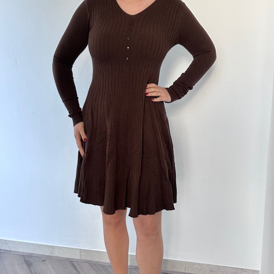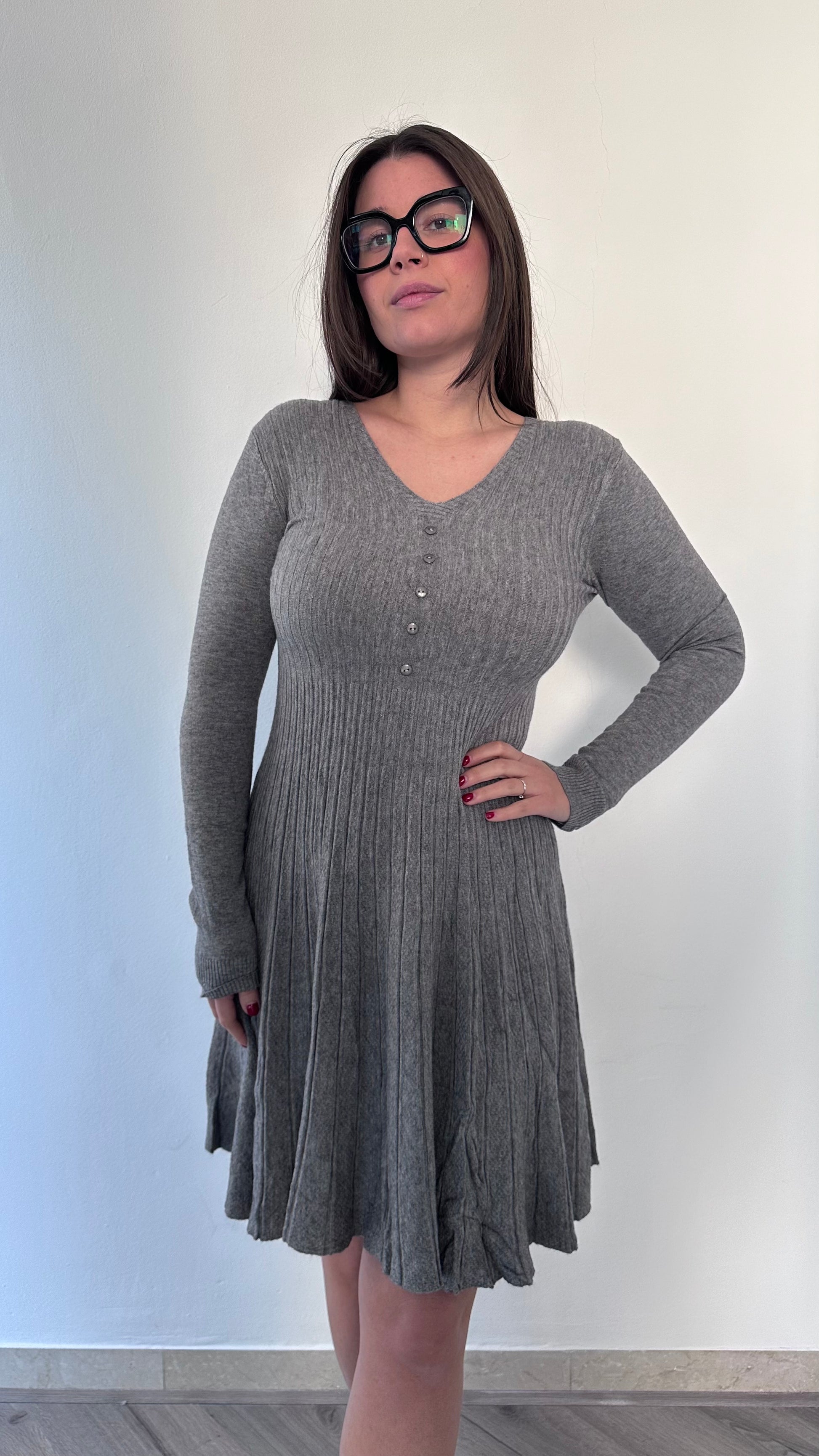 L'iconico abito Elisa svasato presenta un design elegante e femminile, adatto a taglie dalla 38 alla 44 grazie alla sua vestibilità elasticizzata. Con i suoi finti bottoncini e il 37% di viscosa, offre un'esperienza di comfort e stile, perfetto per ogni occasione.