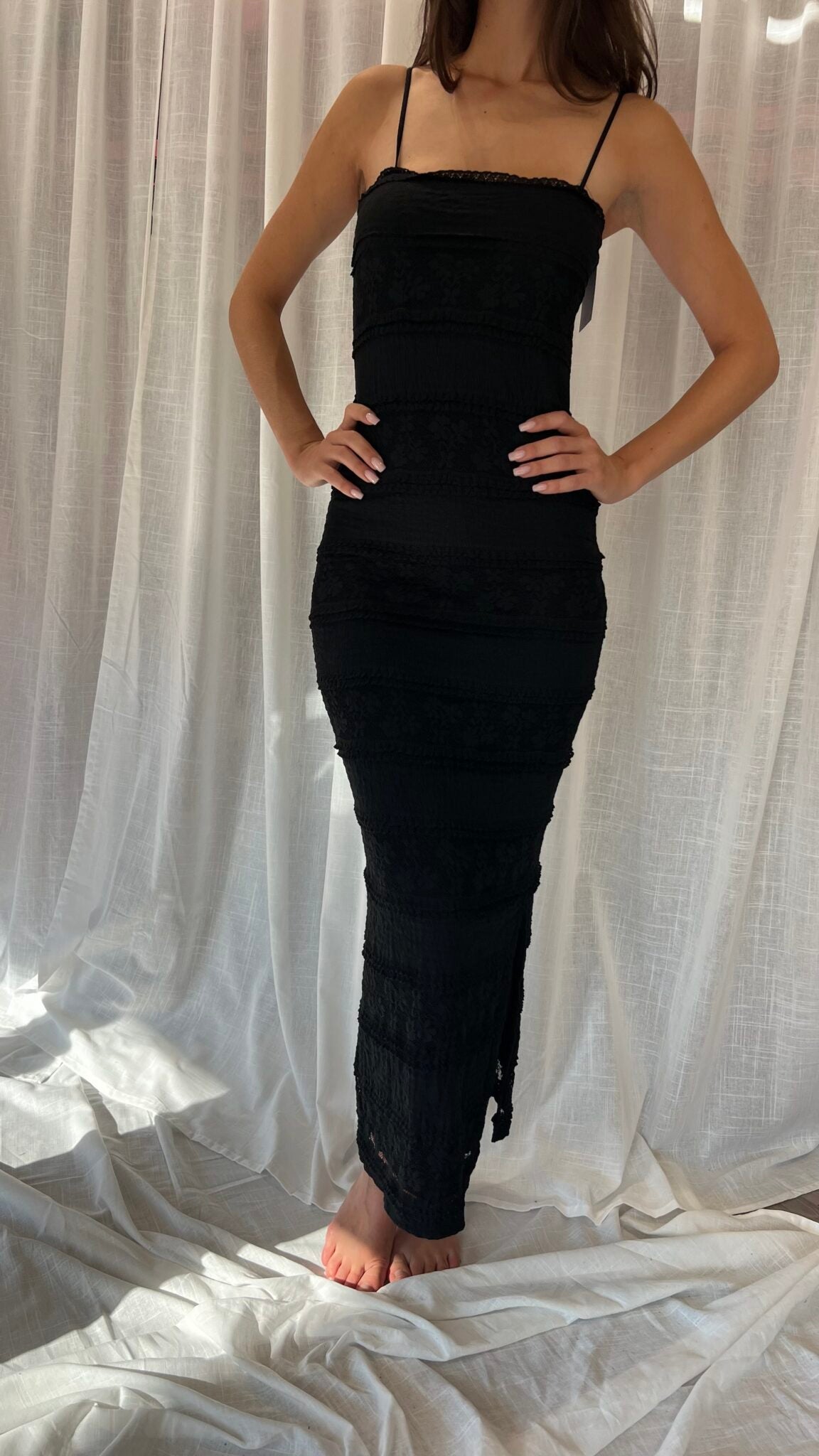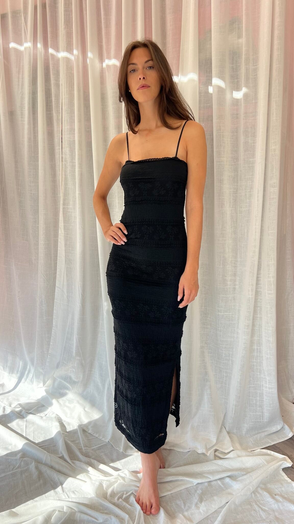 "Realizzato in tessuto elasticizzato con spalline regolabili, questo abito tubino pizzo è la scelta perfetta per adattarsi alla tua taglia unica e vestibilità dalla 38 alla 42. Aggiungi un tocco di eleganza al tuo guardaroba con questo abito versatile e comodo."