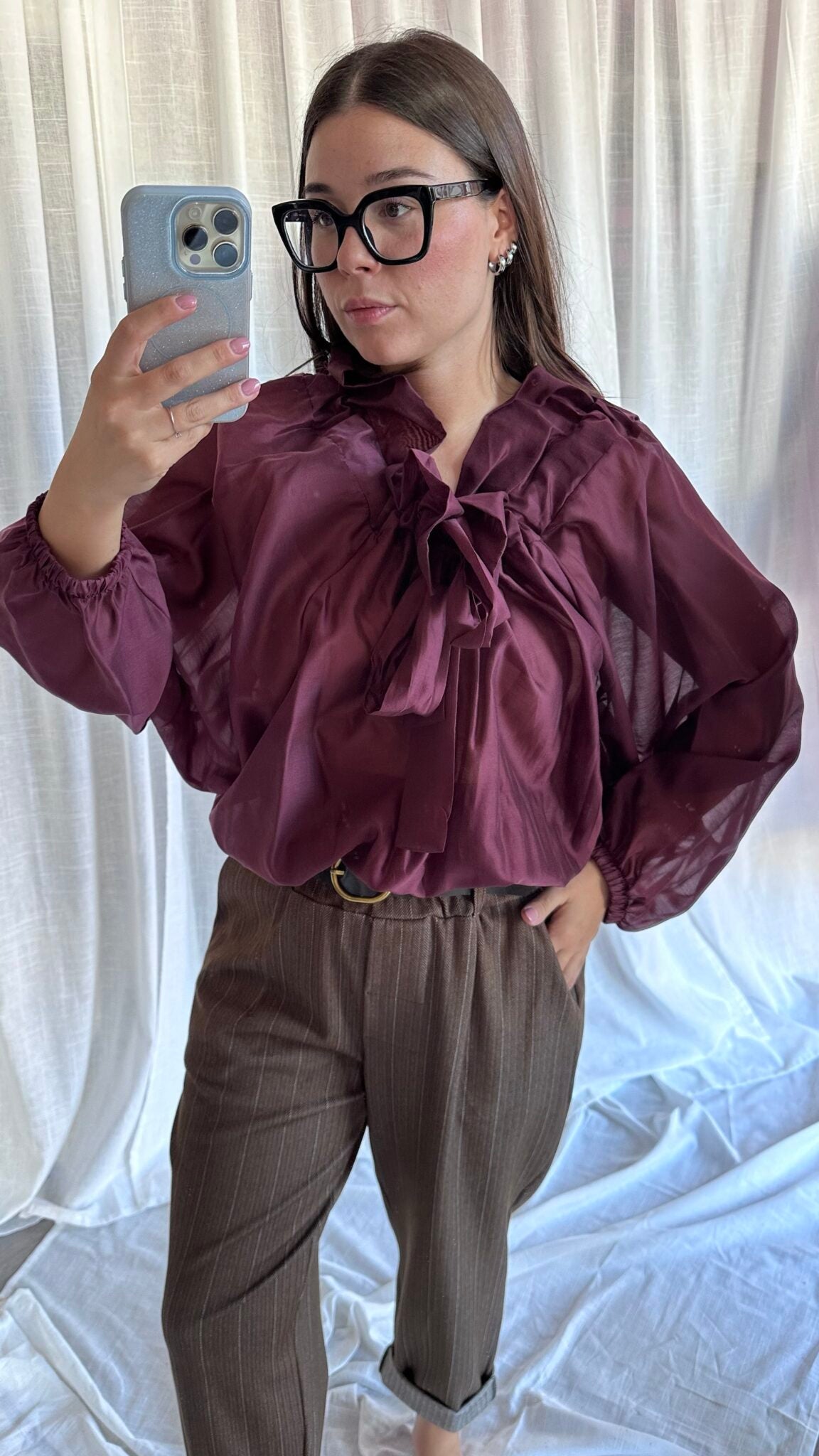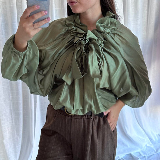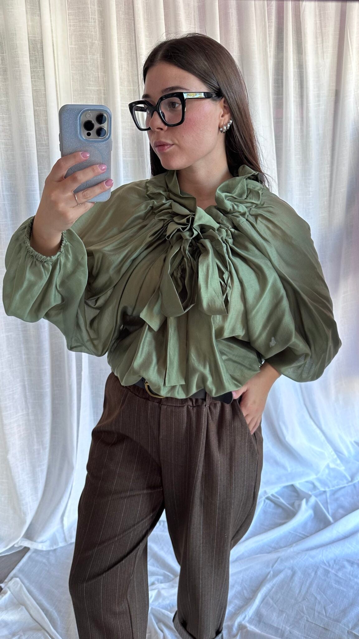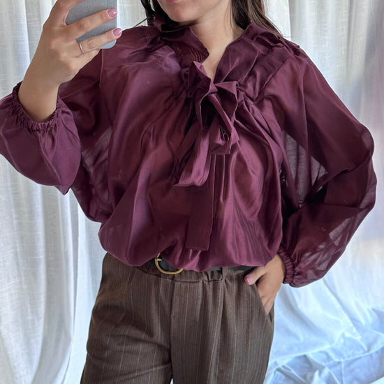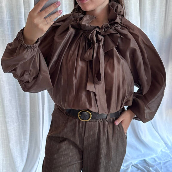 Blusa con laccio arricciato al collo