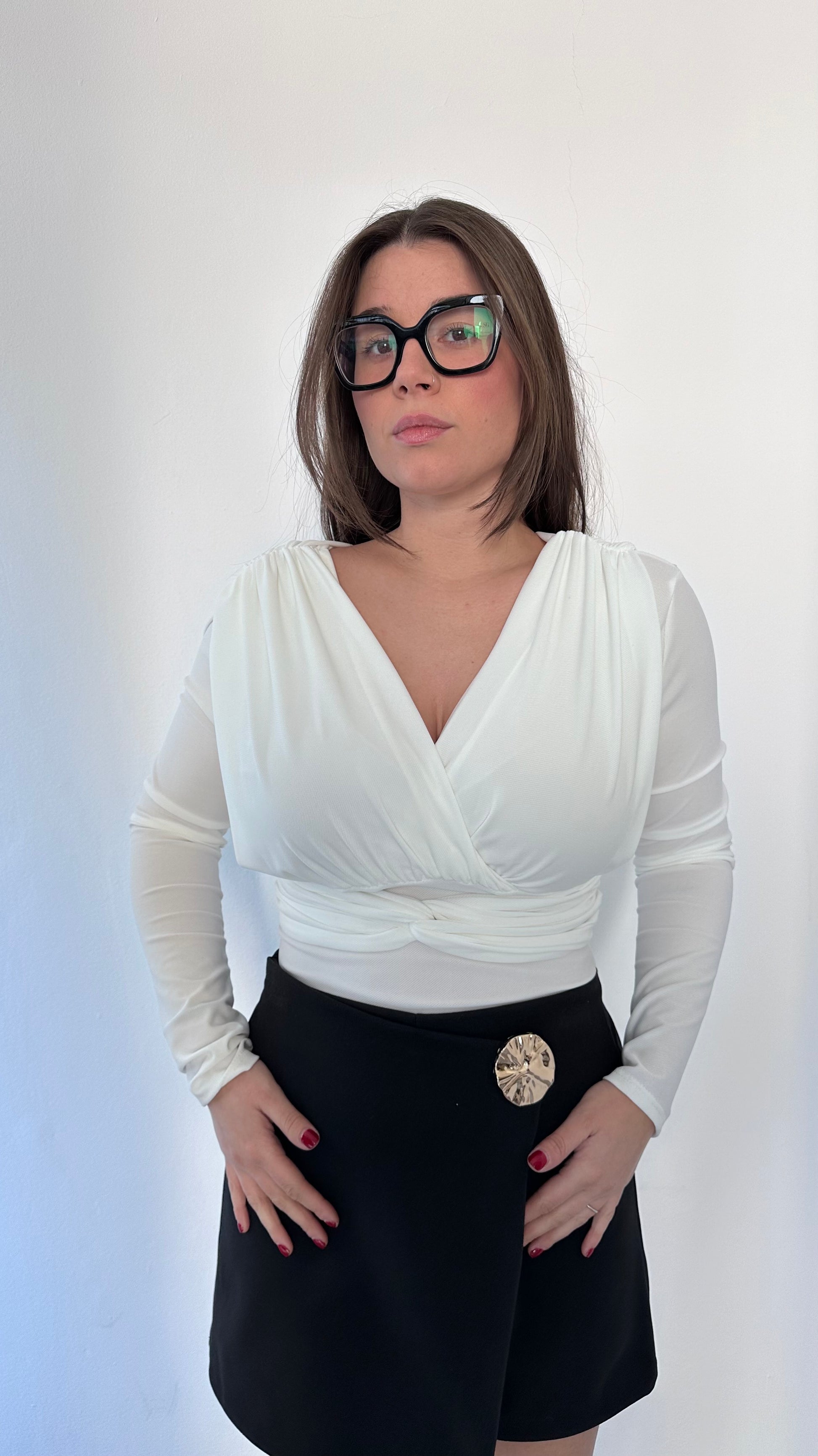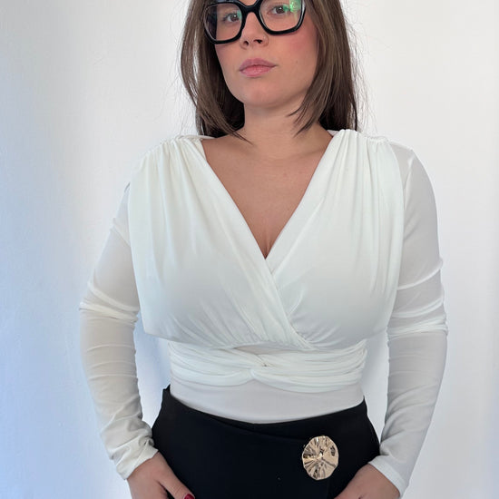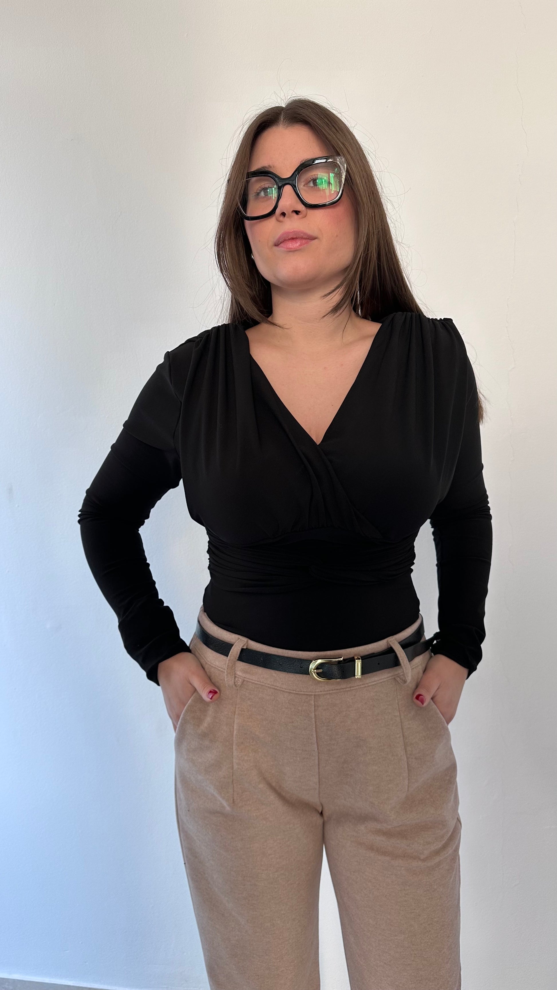 Espandi la tua versatilità e stile con Body Alissa. Realizzato con un tessuto elasticizzato, questo body taglia unica si adatta perfettamente a grandi e piccini nelle taglie 38-44. Con uno scollo a v profondo sia sul fronte che sul retro, offre una vestibilità aderente e un tocco di eleganza a qualsiasi outfit.