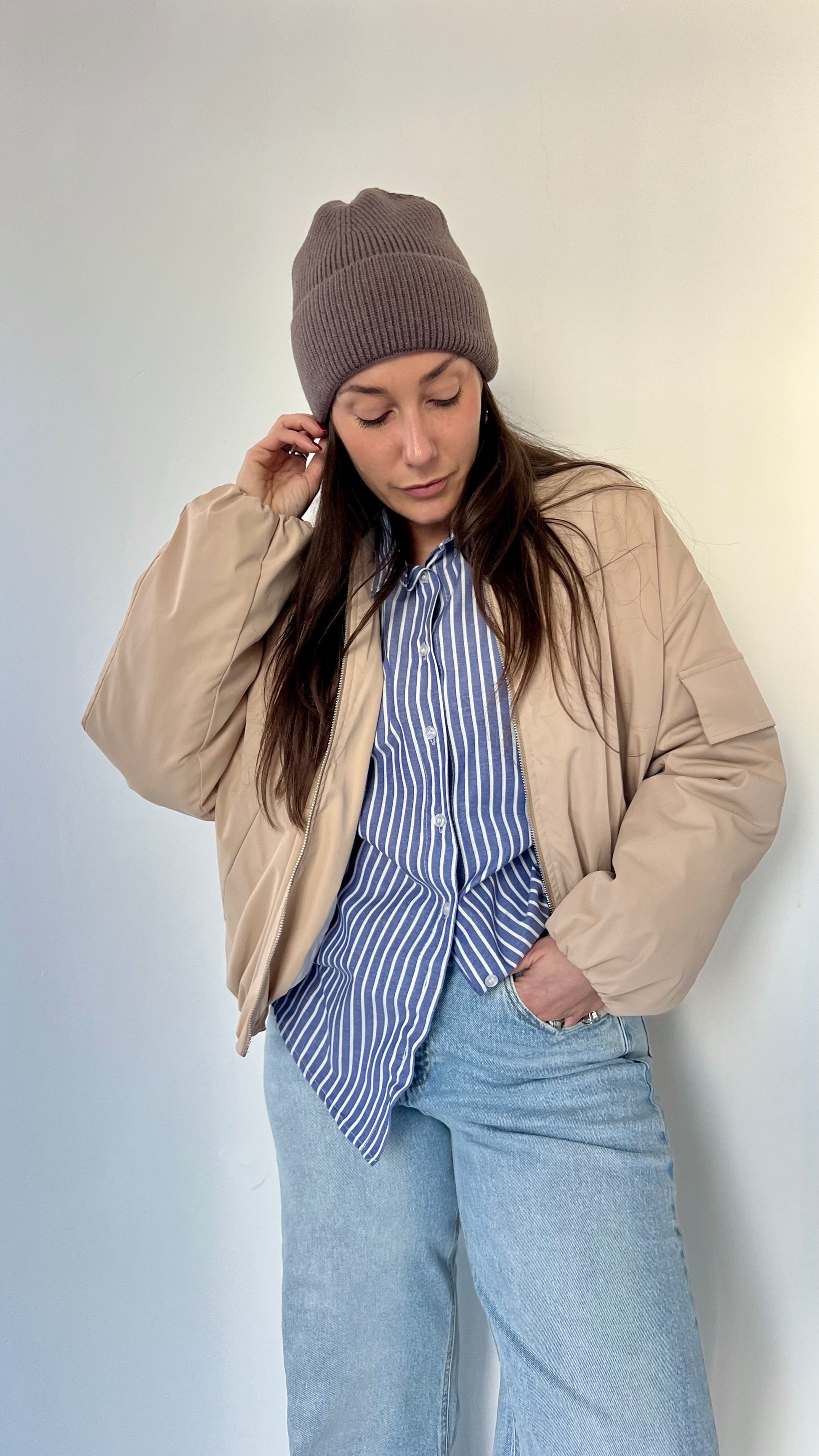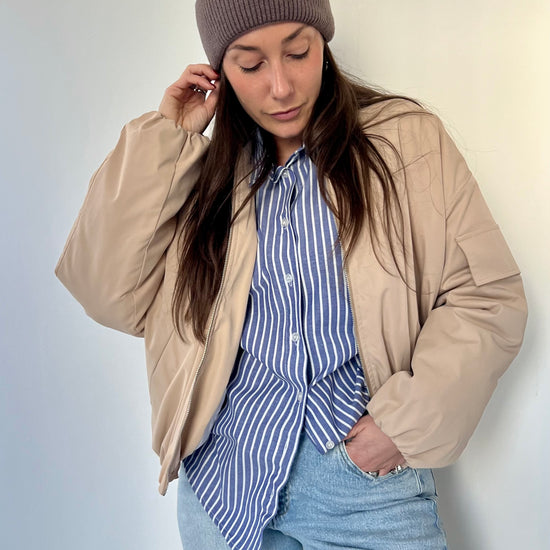 Il Bomber LUMINA è il capo d'abbigliamento che unisce stile e funzionalità. Realizzato in sabbia calda, garantisce calore durante le giornate più fresche. Con la sua vestibilità unica dalla taglia XS alla L, è perfetto per ogni tipo di corpo. Aggiungi un tocco di glamour al tuo outfit con questo bomber versatile.