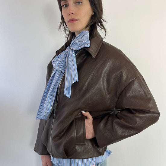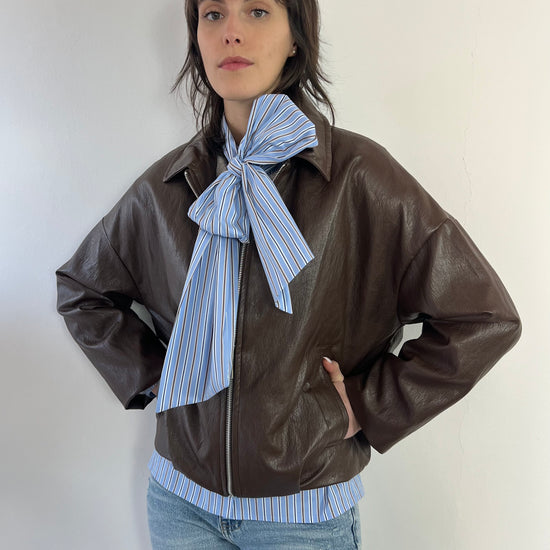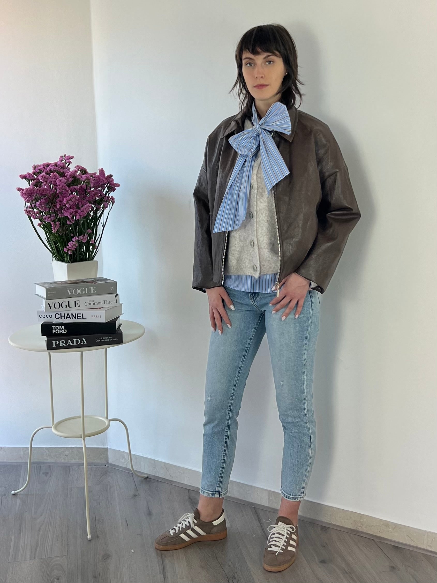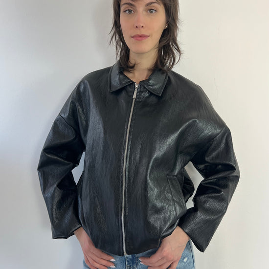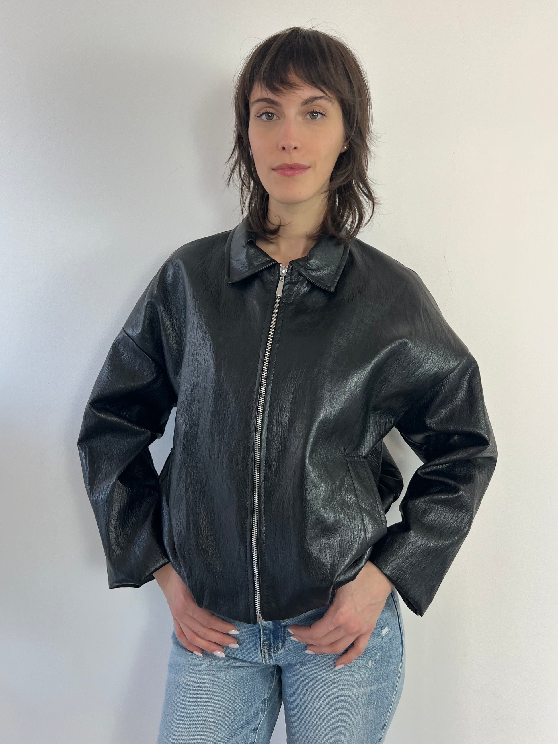 Il Bomber simil pelle è realizzato con una federa in viscosa, un materiale noto per la sua morbidezza e resistenza. La viscosa offre una buona traspirabilità, contribuendo a mantenere il comfort durante tutto il giorno.
