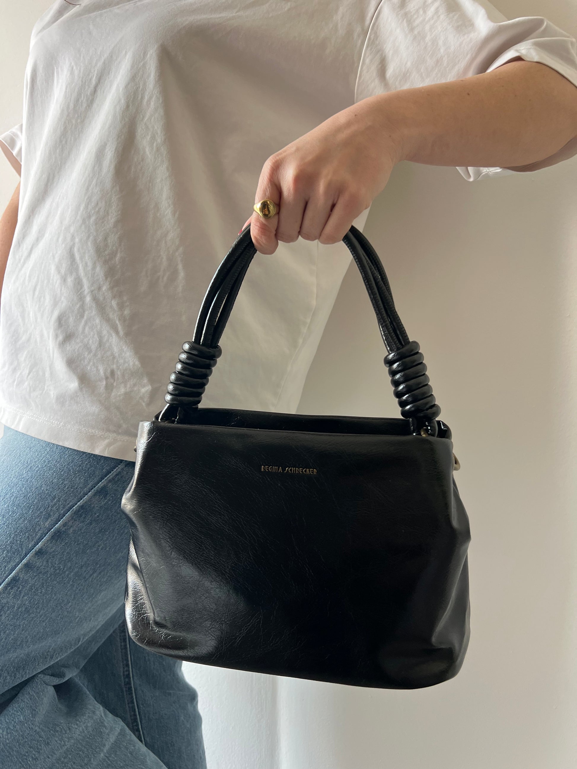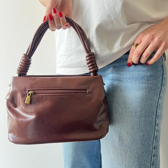 Borsa a mano dal design essenziale e sofisticato con finitura morbida e lucida. Il manico strutturato arricchito da dettagli decorativi conferisce carattere al modello, creando un perfetto equilibrio tra stile contemporaneo e retrò. Compatta ma capiente, si adatta facilmente a look quotidiani o outfit più curati, aggiungendo un tocco di eleganza a ogni occasione.
