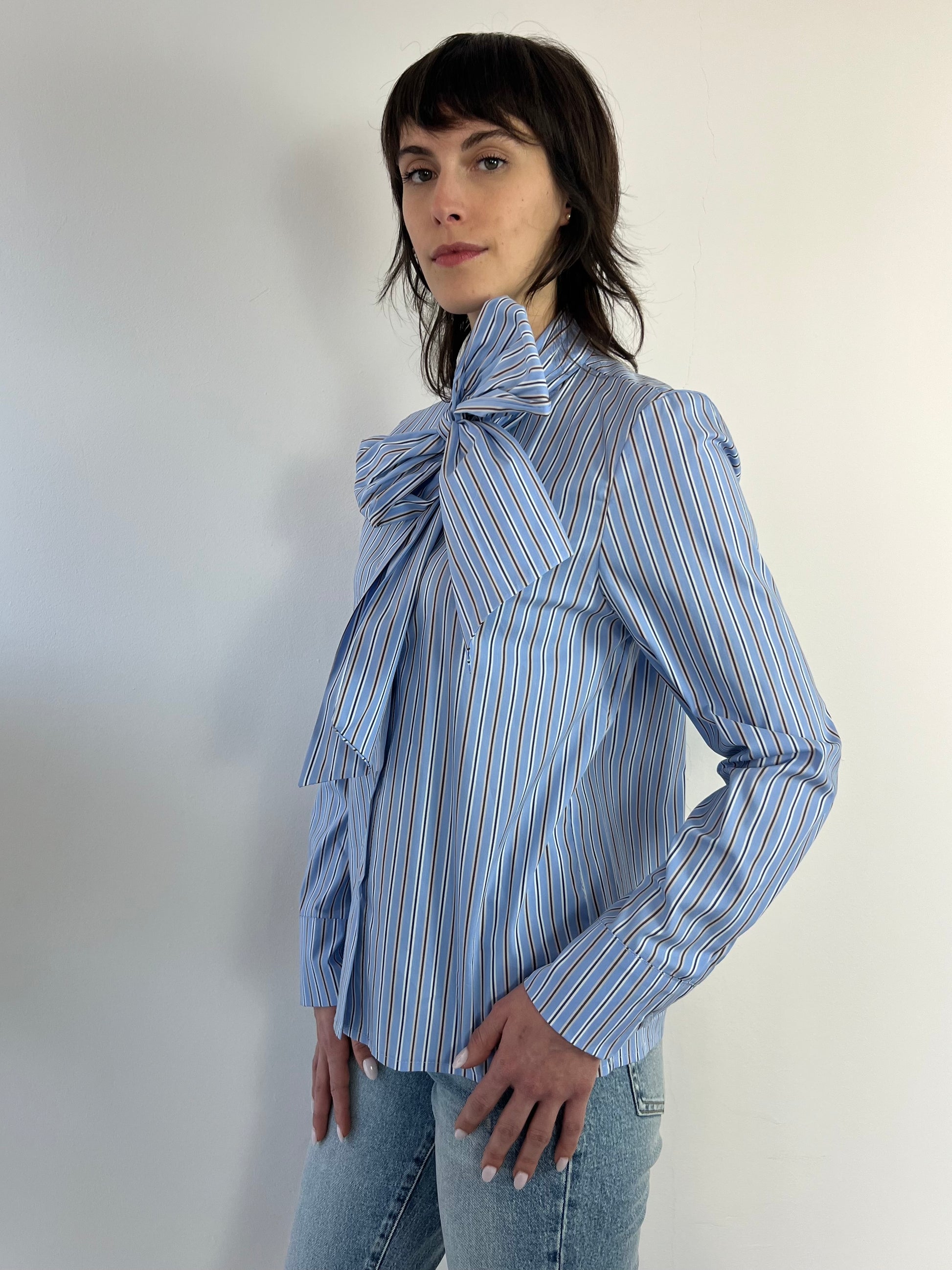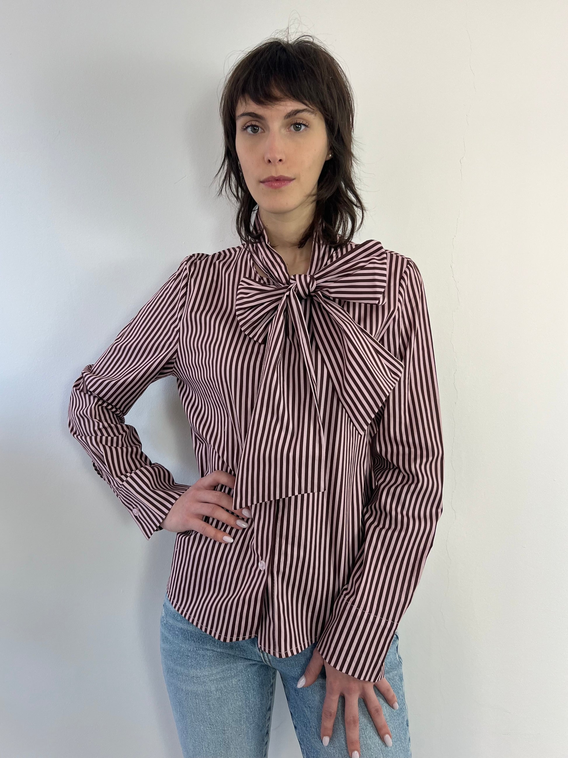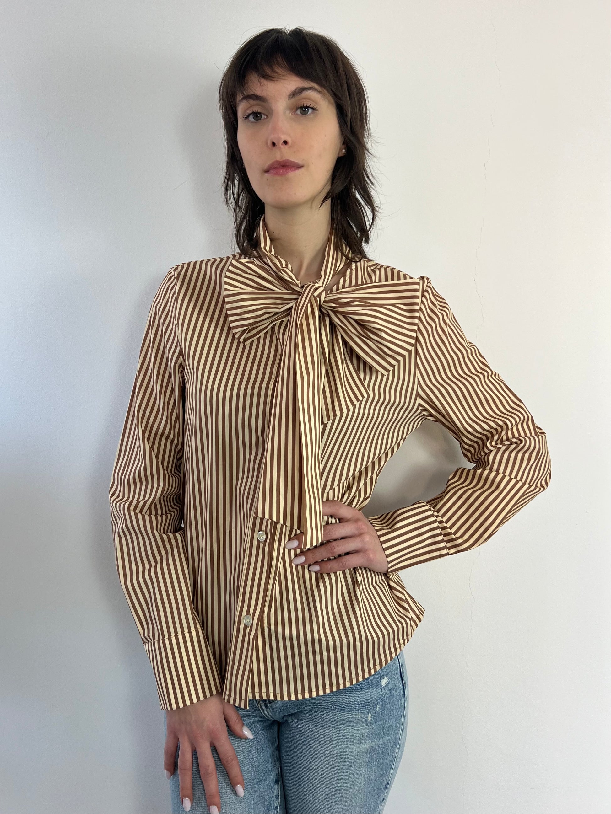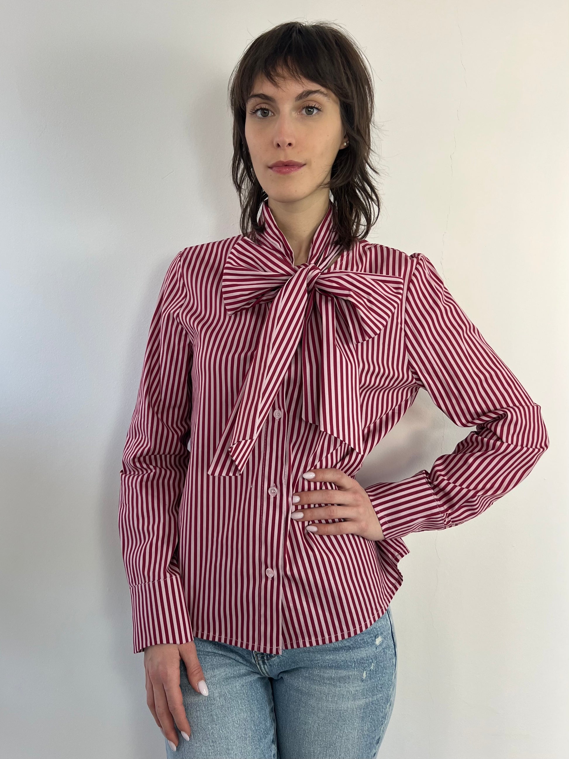 Camicia a righe con fiocco