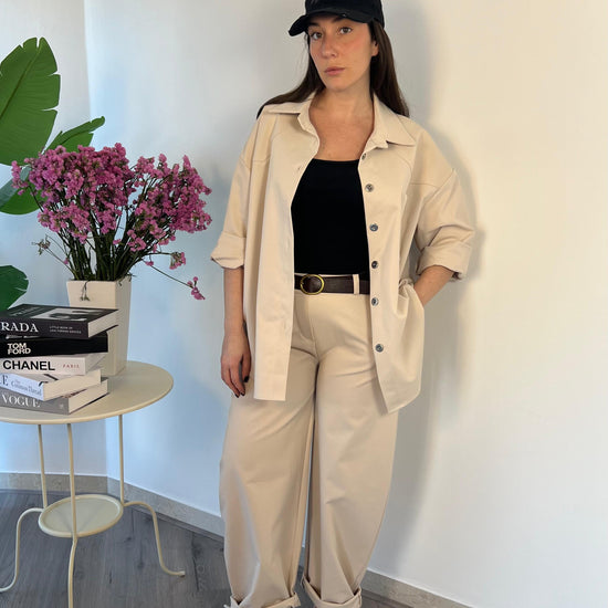 Camicia Martina: la scelta versatile per chi ama lo stile senza compromessi. Realizzata con un affascinante effetto denim, questa over shirt si adatta perfettamente a qualsiasi occasione, dal casual urbano al look più raffinato. Indossala aperta su un semplice t-shirt per un'estetica street style, oppure abbinala a capi eleganti per creare un outfit sofisticato. Un pezzo essenziale nel guardaroba di chi sa che la vera eleganza risiede nella versatilità. Un capo che non passa mai di moda, perfetto per esprimere la tua personalità in ogni momento della giornata. Vestibilità (40-48)
