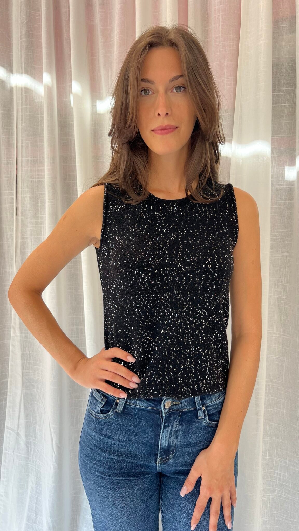 La Canotta e mini paillettes è un must-have nel tuo guardaroba! Con la taglia unica che veste dalla XS alla L, è perfetta per adattarsi a tutte le forme del corpo. Realizzata in morbida viscosa al 56%, ti garantirà comodità e un tocco di eleganza grazie alle paillettes. Aggiungi un tocco di glam al tuo outfit con questa canotta versatile e di tendenza.
