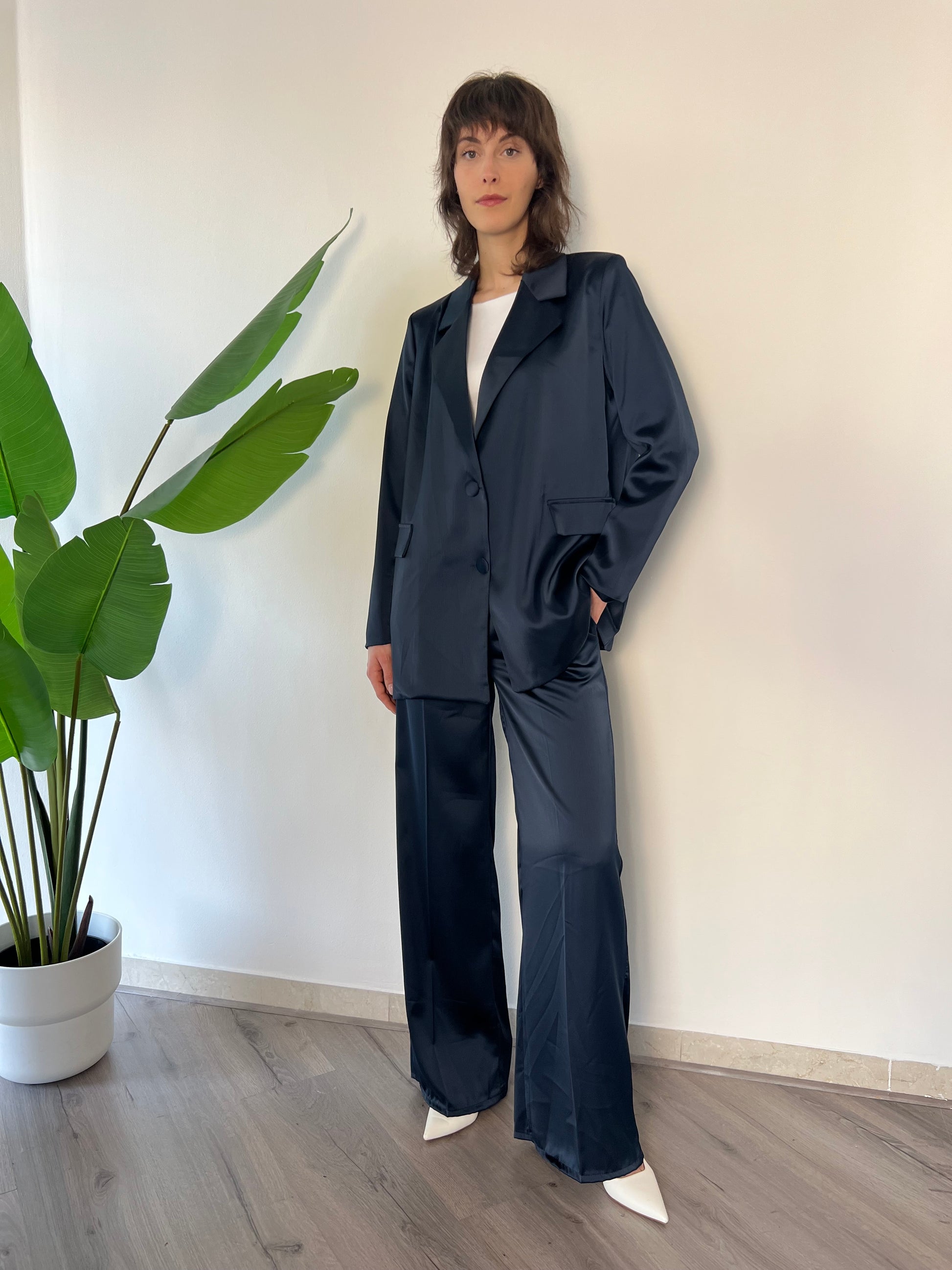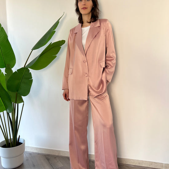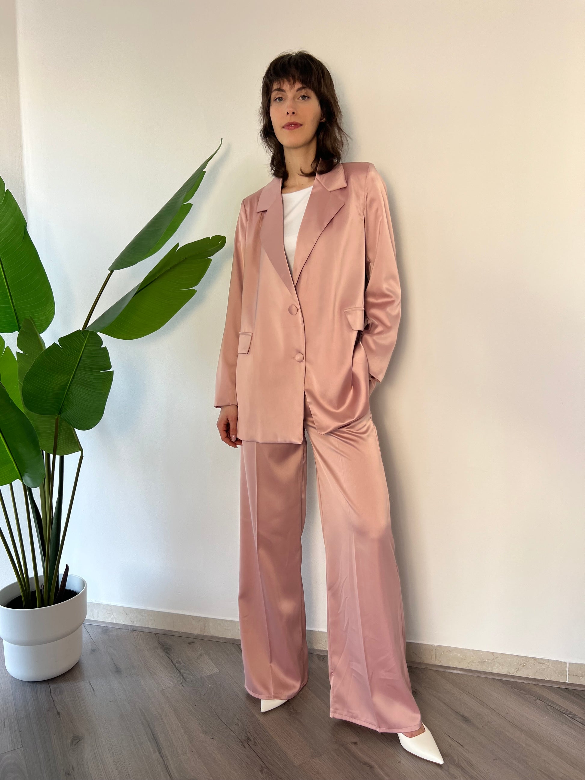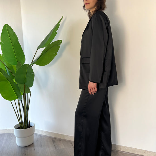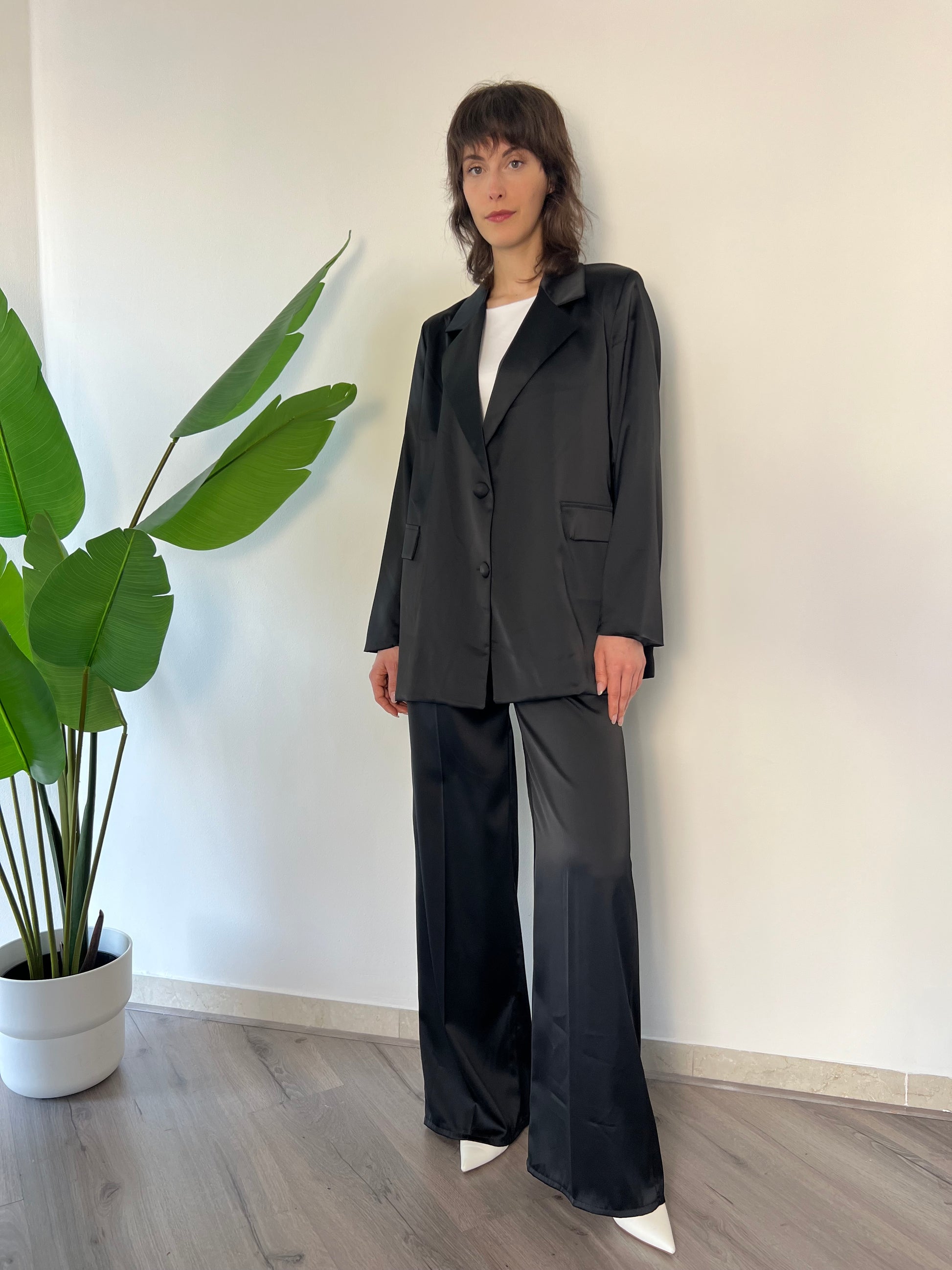 Scopri il Completo Francesca, un'armonia perfetta di eleganza e comfort! Con la giacca over e pantaloni elasticizzati, si adatta dalla taglia 40 alla 44, offrendoti una silhouette raffinata. L'effetto finta seta aggiunge un tocco di lusso, rendendolo ideale per ogni occasione. Indossa la tua bellezza!
