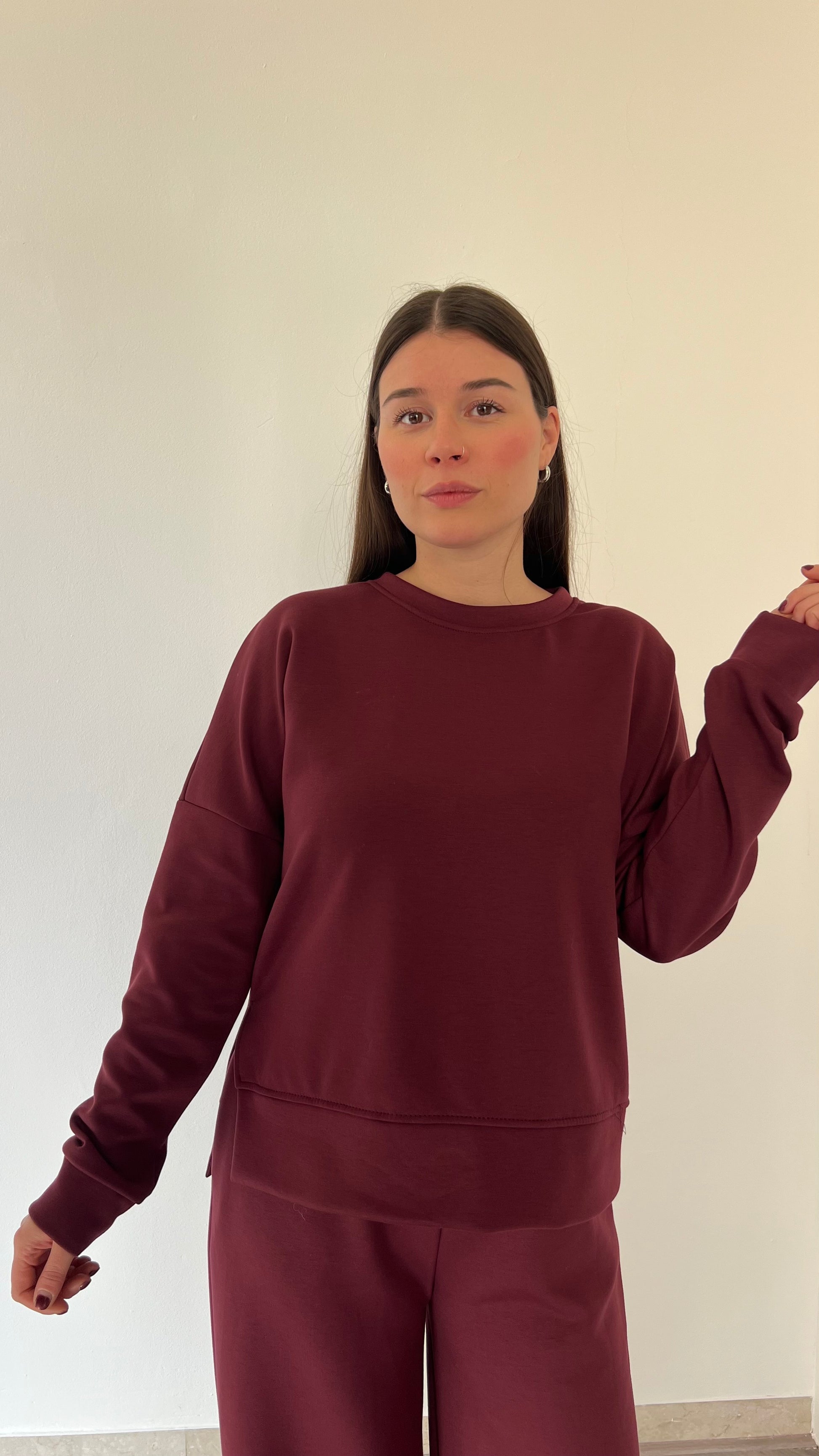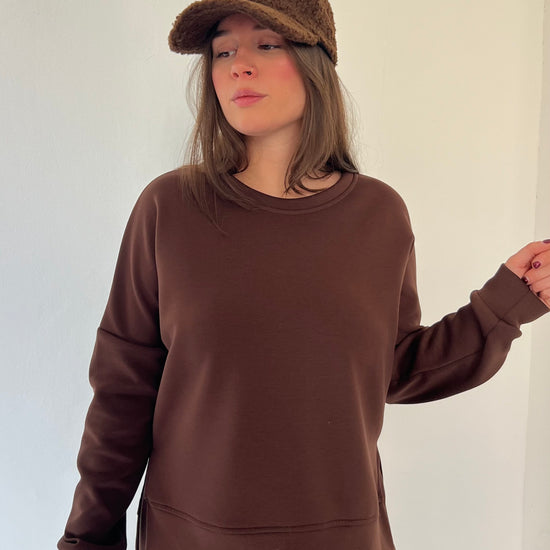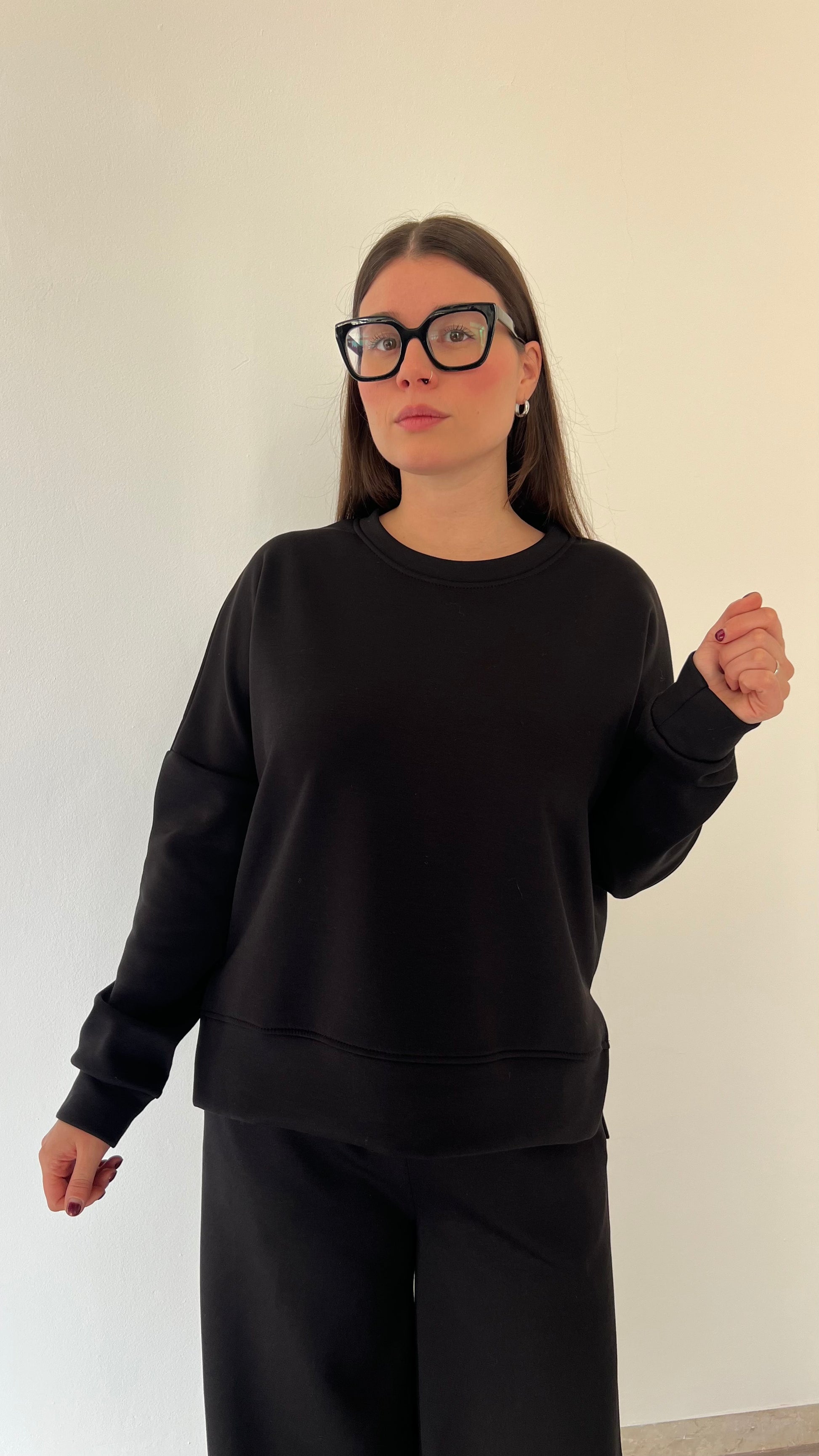 Felpa in neoprene con interno leggermente felpato, caratterizzata da spacchetti laterali e lunghezza maggiore sul retro. La vestibilità morbida e avvolgente assicura comfort durante tutto il giorno, con un design contemporaneo e dinamico. Consigliata per chi indossa dalla 40 alla 46.