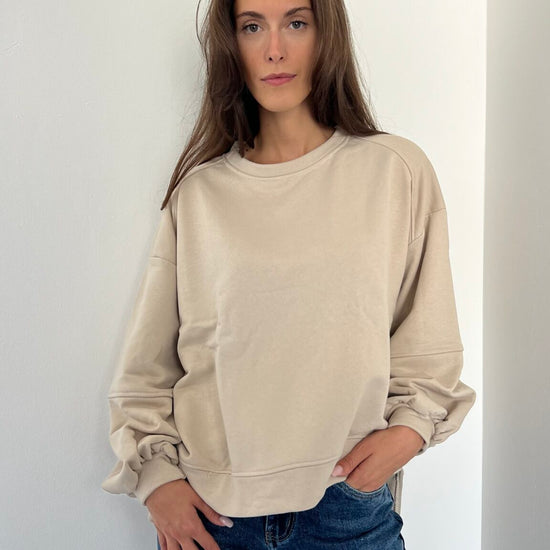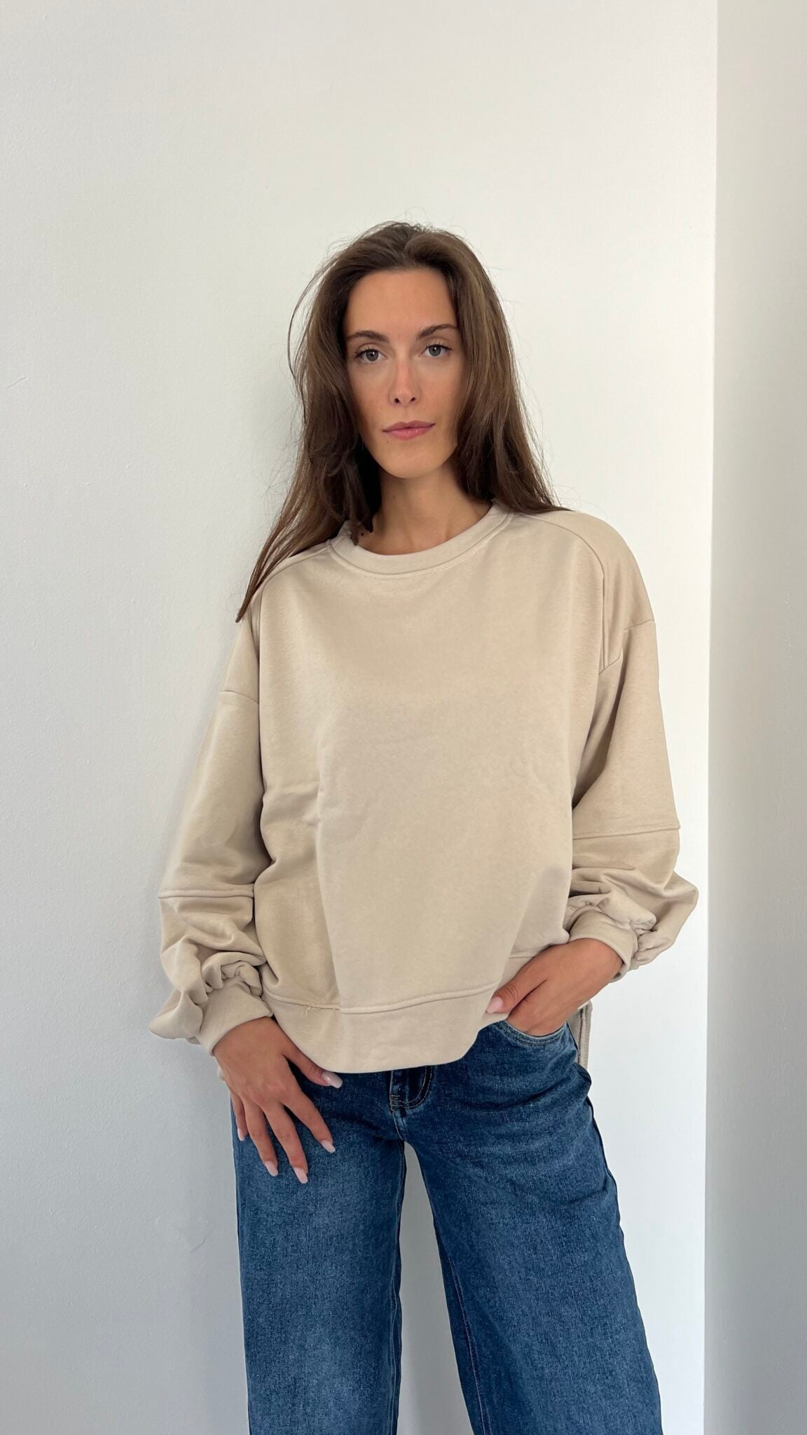 Aggiungi stile e comodità al tuo guardaroba con la Felpa Over Garzata. La taglia unica si adatta perfettamente alle taglie 40-44, mentre la vestibilità over garantisce un look alla moda e confortevole. Realizzata in garzata, questa felpa è leggermente più lunga dietro per un tocco di originalità.
