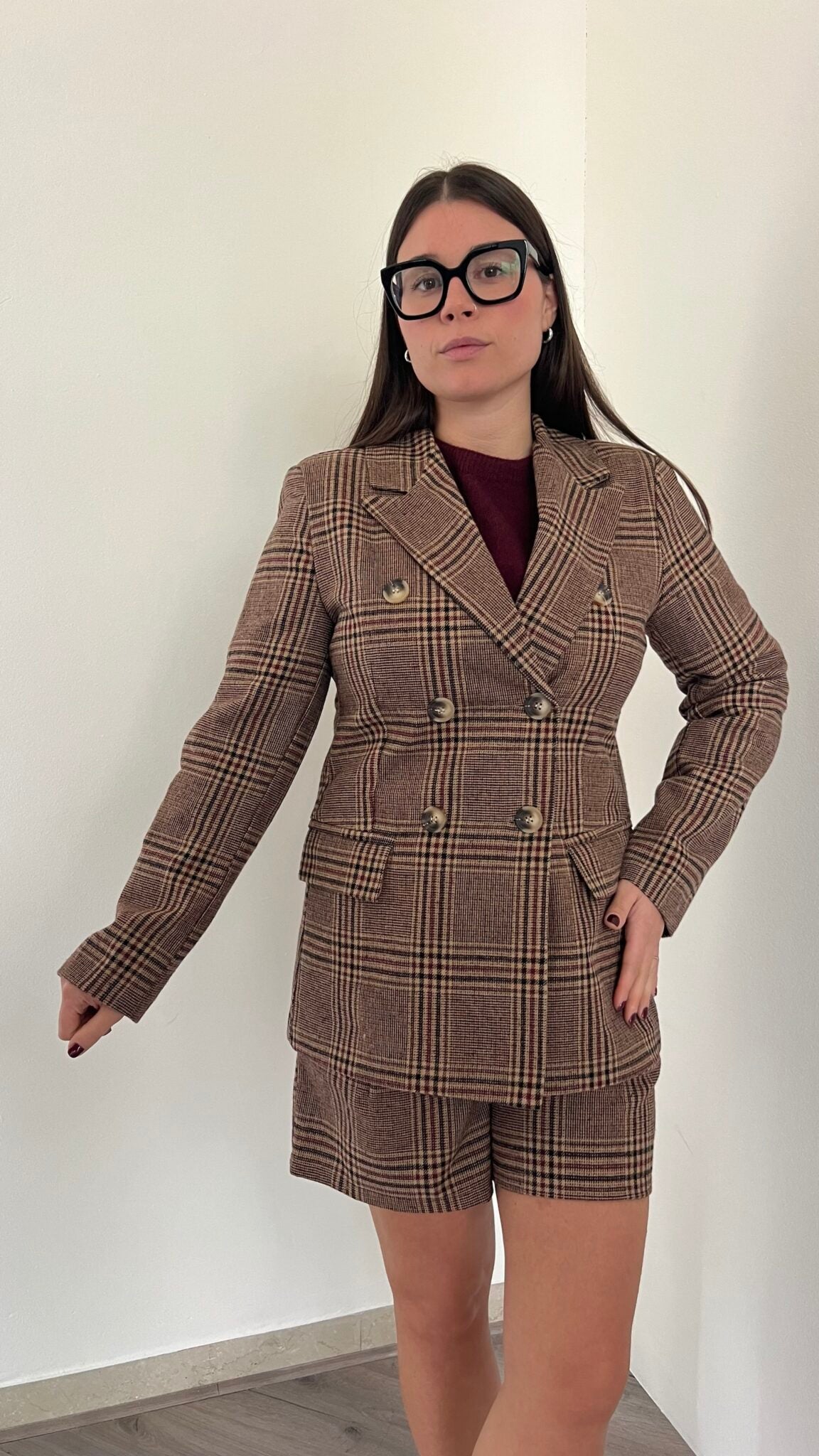 Giacca doppiopetto in taglia unica, pensata per adattarsi dalle 38 alla 44 con una vestibilità dalla linea dritta e rigorosa. Il taglio maschile conferisce un'allure sofisticata e contemporanea, perfetto per chi desidera un'estetica androgina e decisa. Un pezzo versatile che eleva qualsiasi guardaroba con eleganza senza tempo.