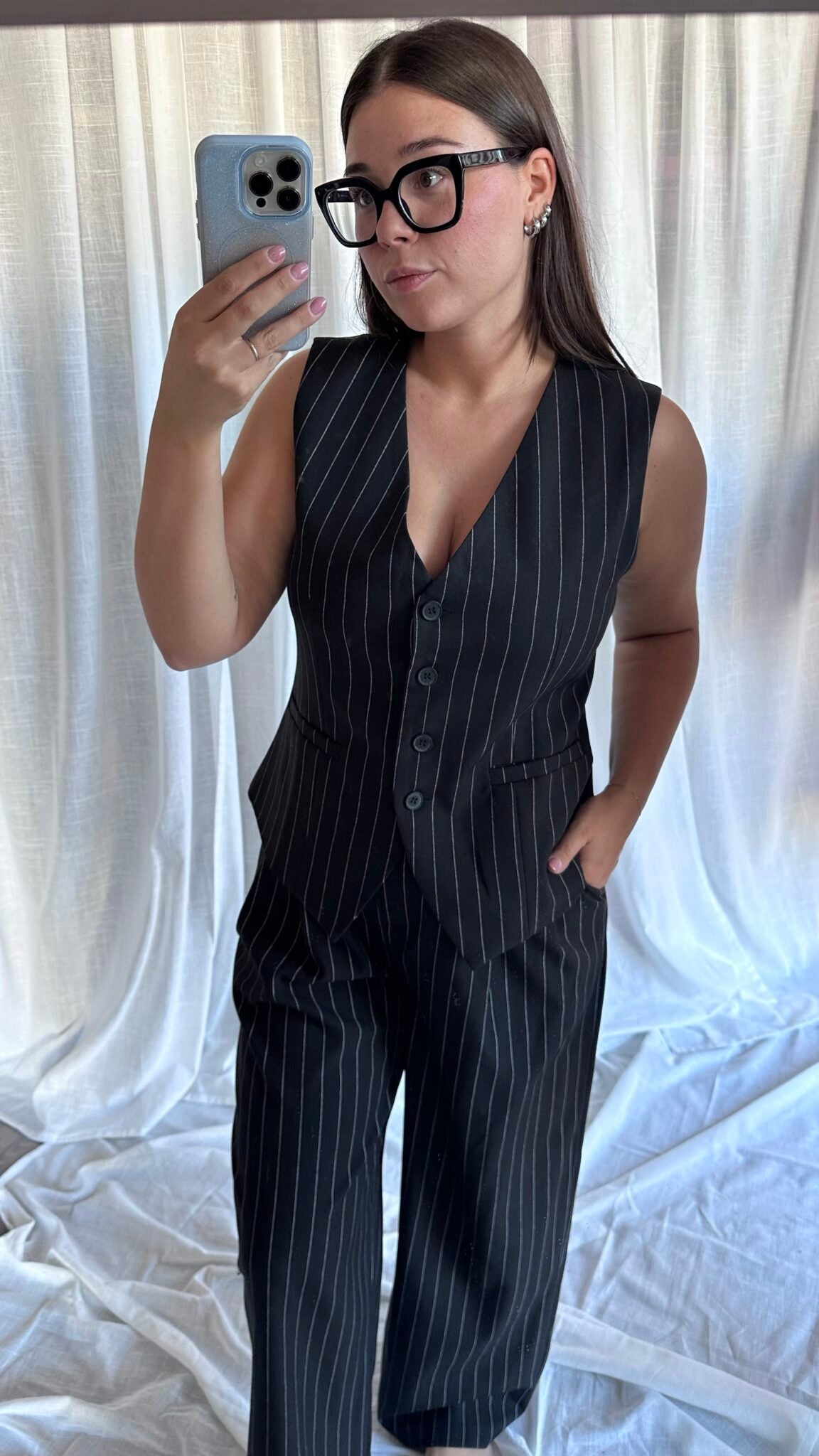 Realizza un look sofisticato e impeccabile con il nostro gilet gessato. Abbina il gilet alla giacca gessata per un completo perfetto. Grazie alla sua taglia, otterrai una vestibilità perfetta per un aspetto elegante e curato al dettaglio. Aggiungi un tocco di classe al tuo outfit con il nostro gilet gessato.