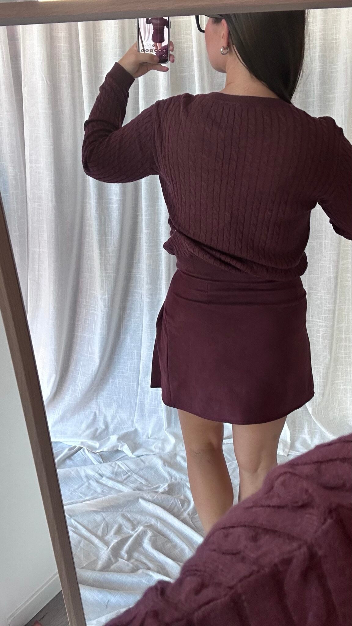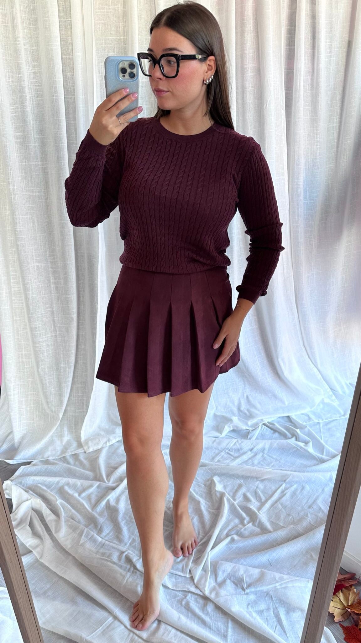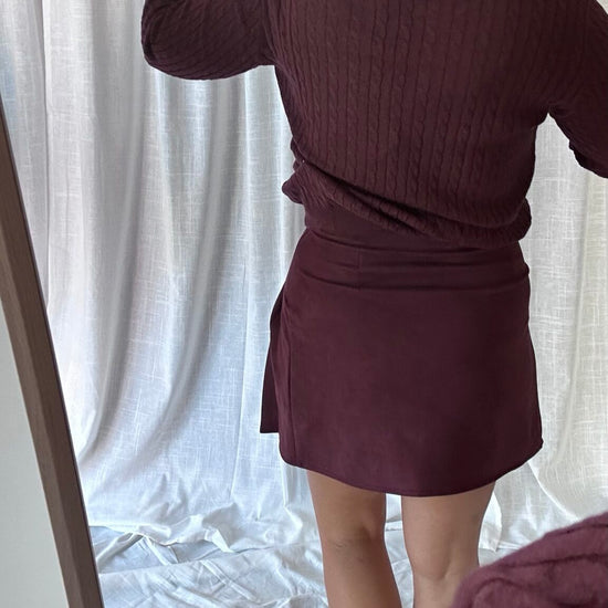 Questa gonna in camoscio borgogna è perfetta per un look elegante e sofisticato. La zip laterale permette di indossarla facilmente e il tessuto simil camoscio garantisce una sensazione di morbidezza sulla pelle. Con il suo taglio aderente, si adatta perfettamente alla figura per un outfit impeccabile.