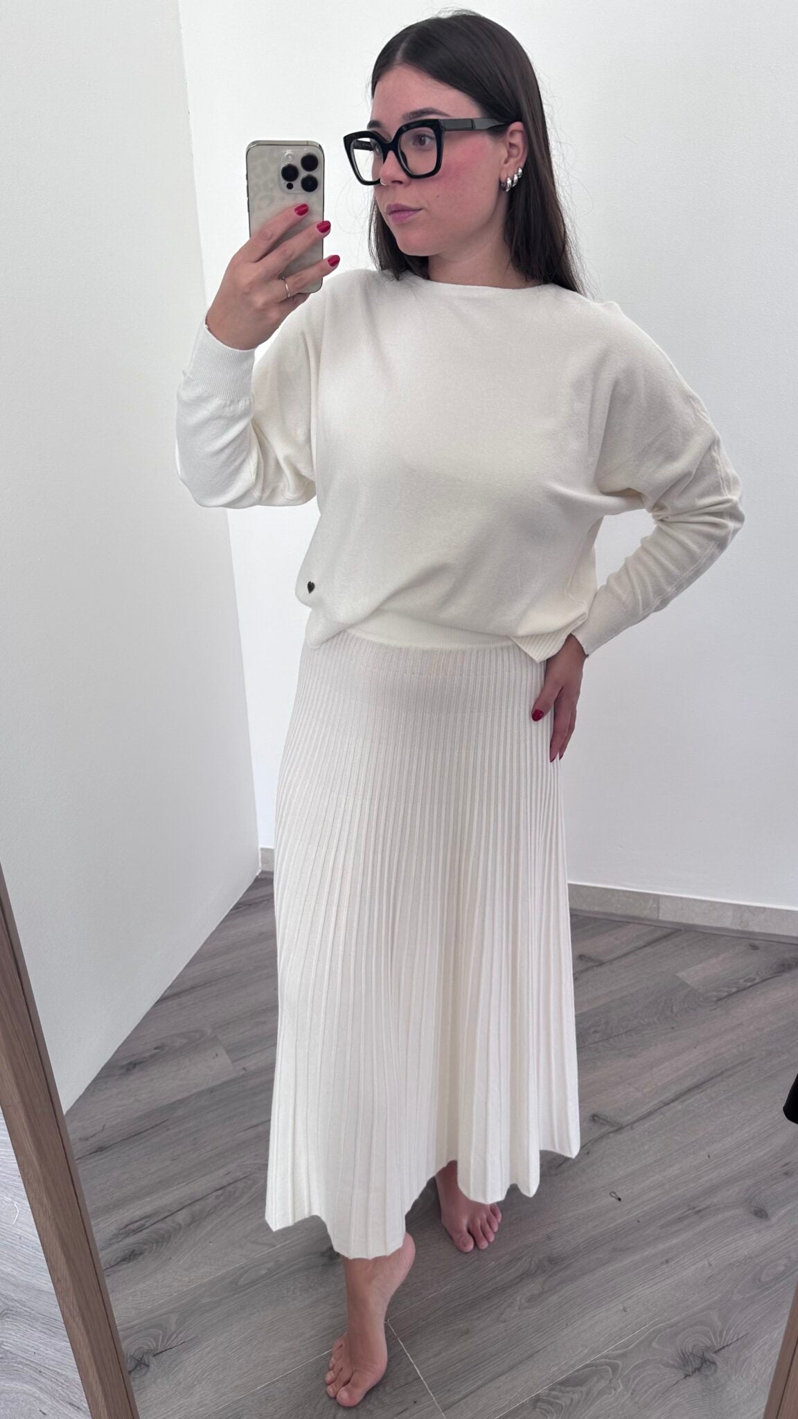 Questa gonna in morbida viscosa è taglia unica, adattandosi perfettamente alle taglie dalla 38 alla 46. Il plissé è sia bello che comodo e, grazie alla sua morbidezza, non si aprirà facilmente durante il suo utilizzo. Un'opzione versatile per ogni occasione.