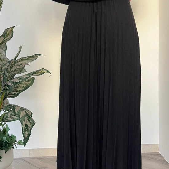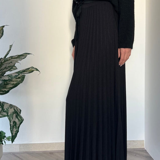 Questa gonna midi plissè è un capo versatile e comodo grazie al tessuto elasticizzato in viscosa calda. Adatta alle taglie dalla 40 alla 44, è perfetta per un look elegante e confortevole.