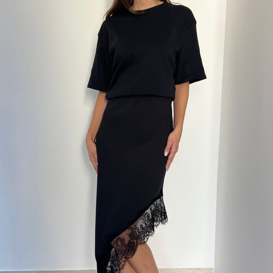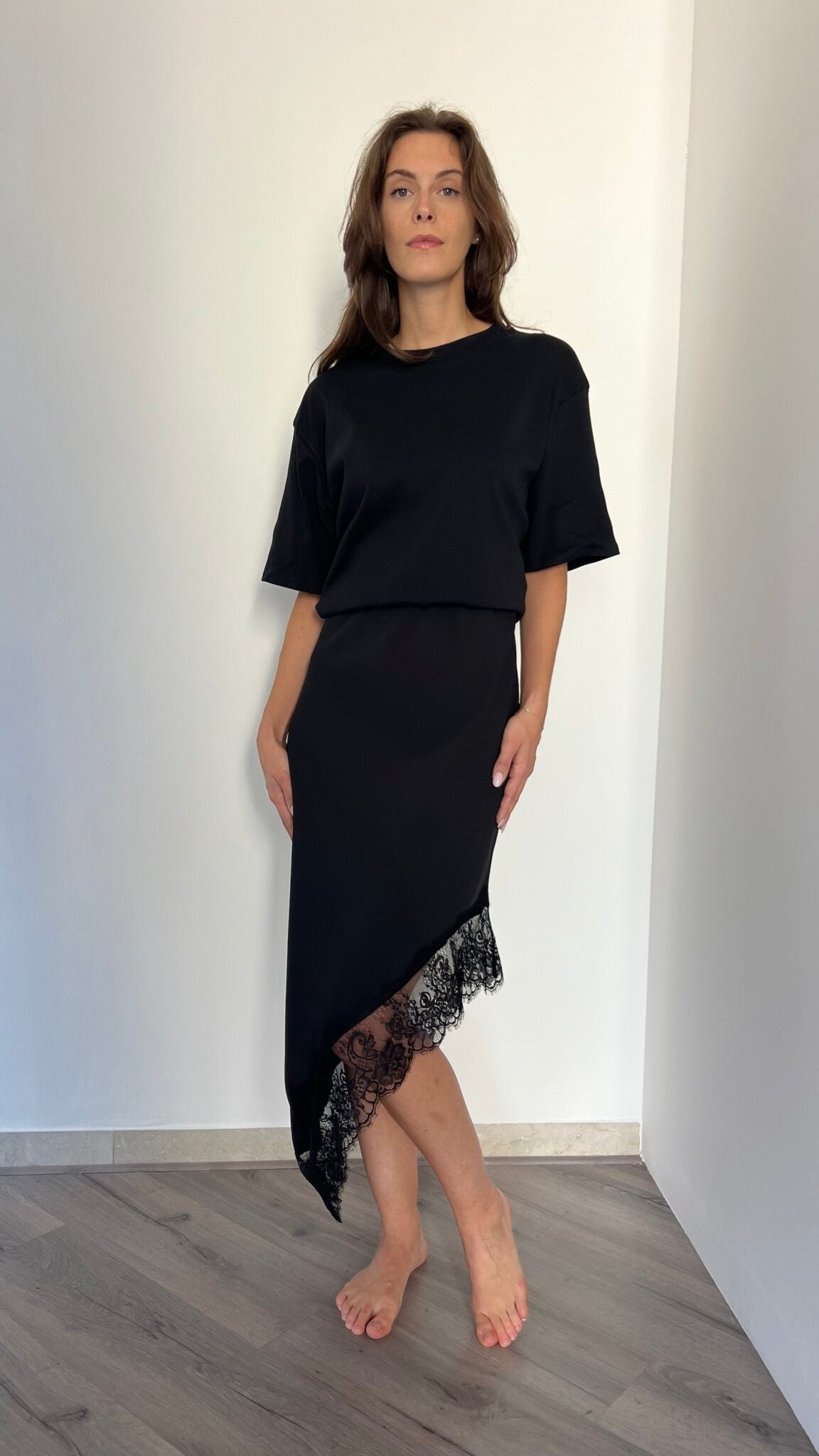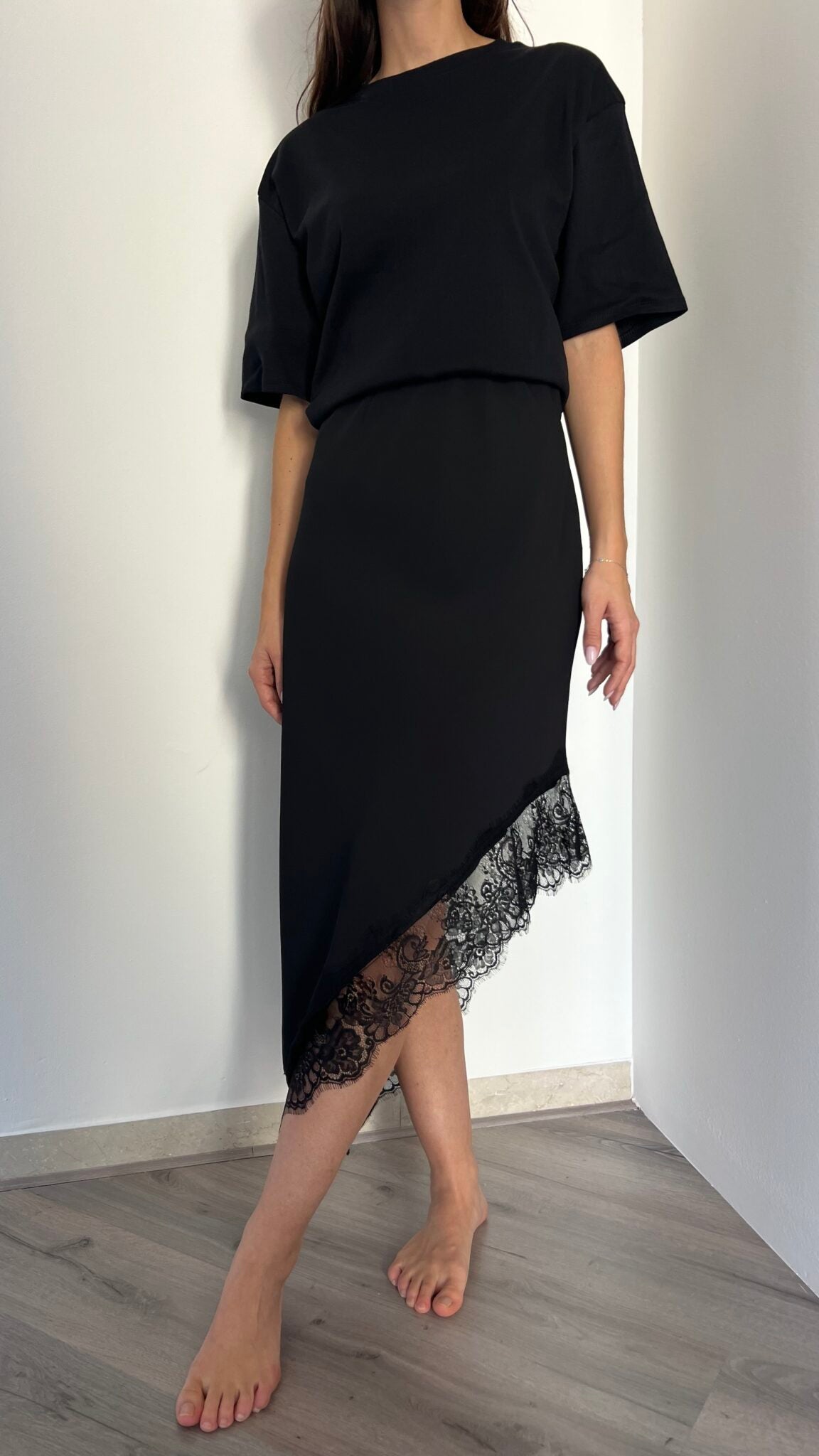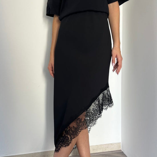 Questa gonna sfasata e pizzo è il must-have per questa stagione. La sua vestibilità dalla taglia 38 alla 44 la rende adatta per ogni donna. Il modello sfasato con il fondo obliquo dà un tocco di originalità, mentre il bordo in pizzo aggiunge un tocco di tendenza. Aggiungi questo capo al tuo guardaroba per uno stile unico e di tendenza.