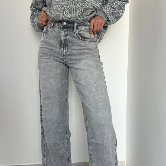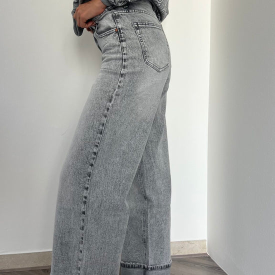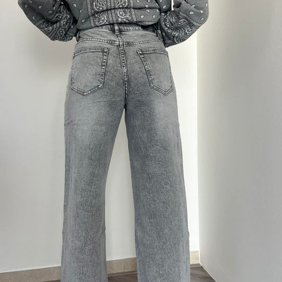 Denim grigio con risvolto alto, elasticizzato per adattarsi comodamente e massimo risvolto alla moda. Disponibile nelle taglie XS (38), S (40), M (42) e L (44). Aggiungi un tocco di stile ai tuoi outfit con questi jeans di tendenza.