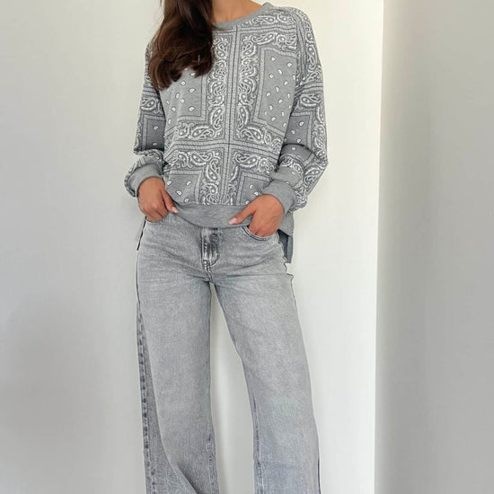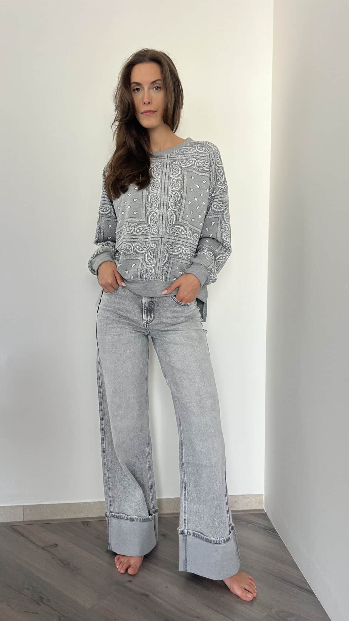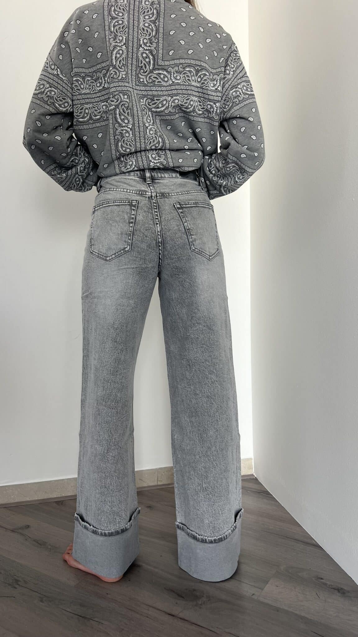 Jeans grigio con risvolto