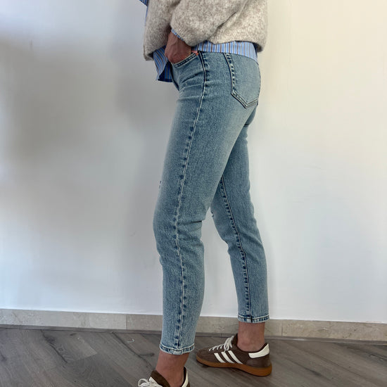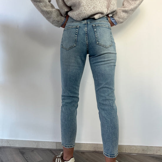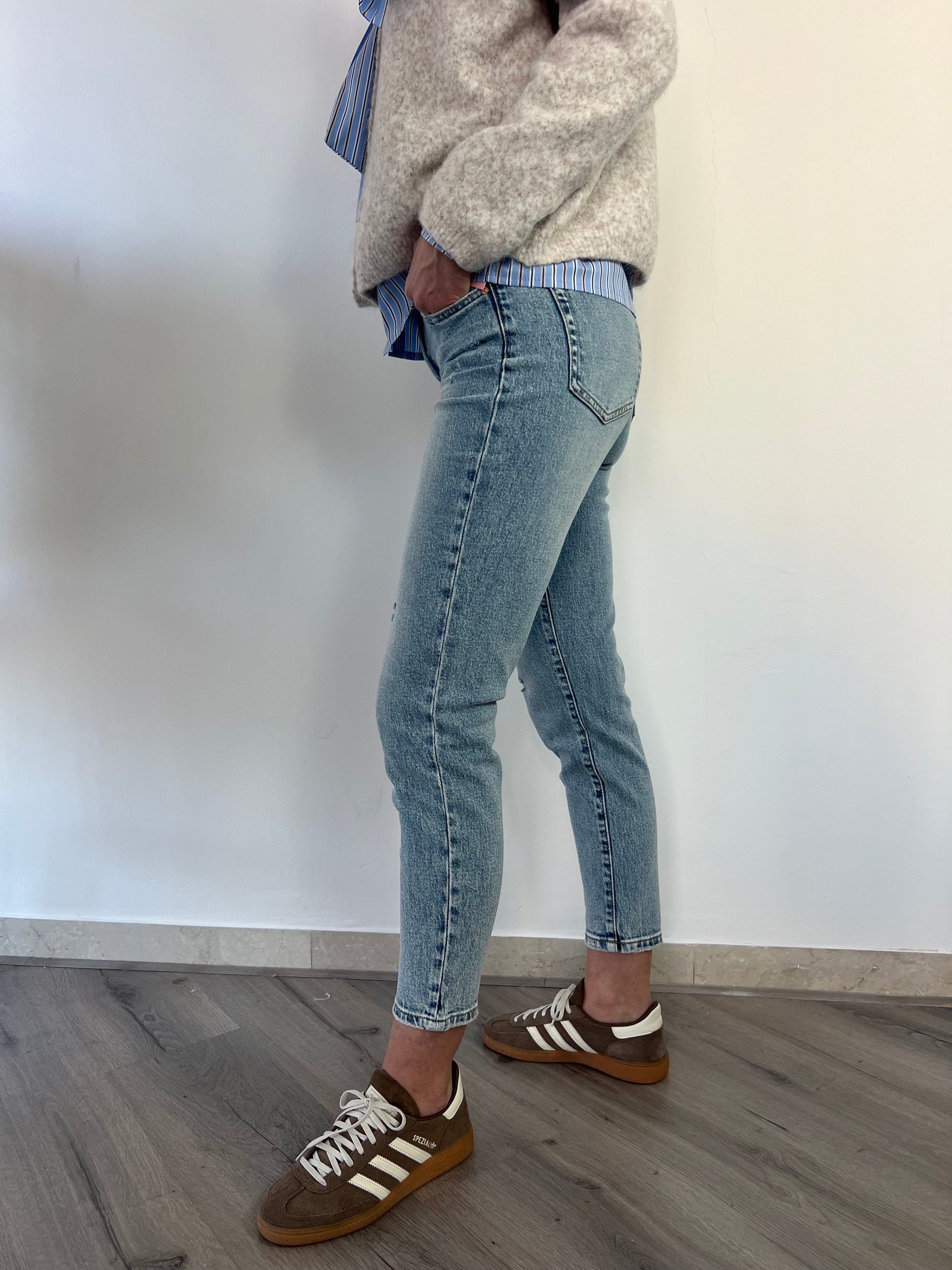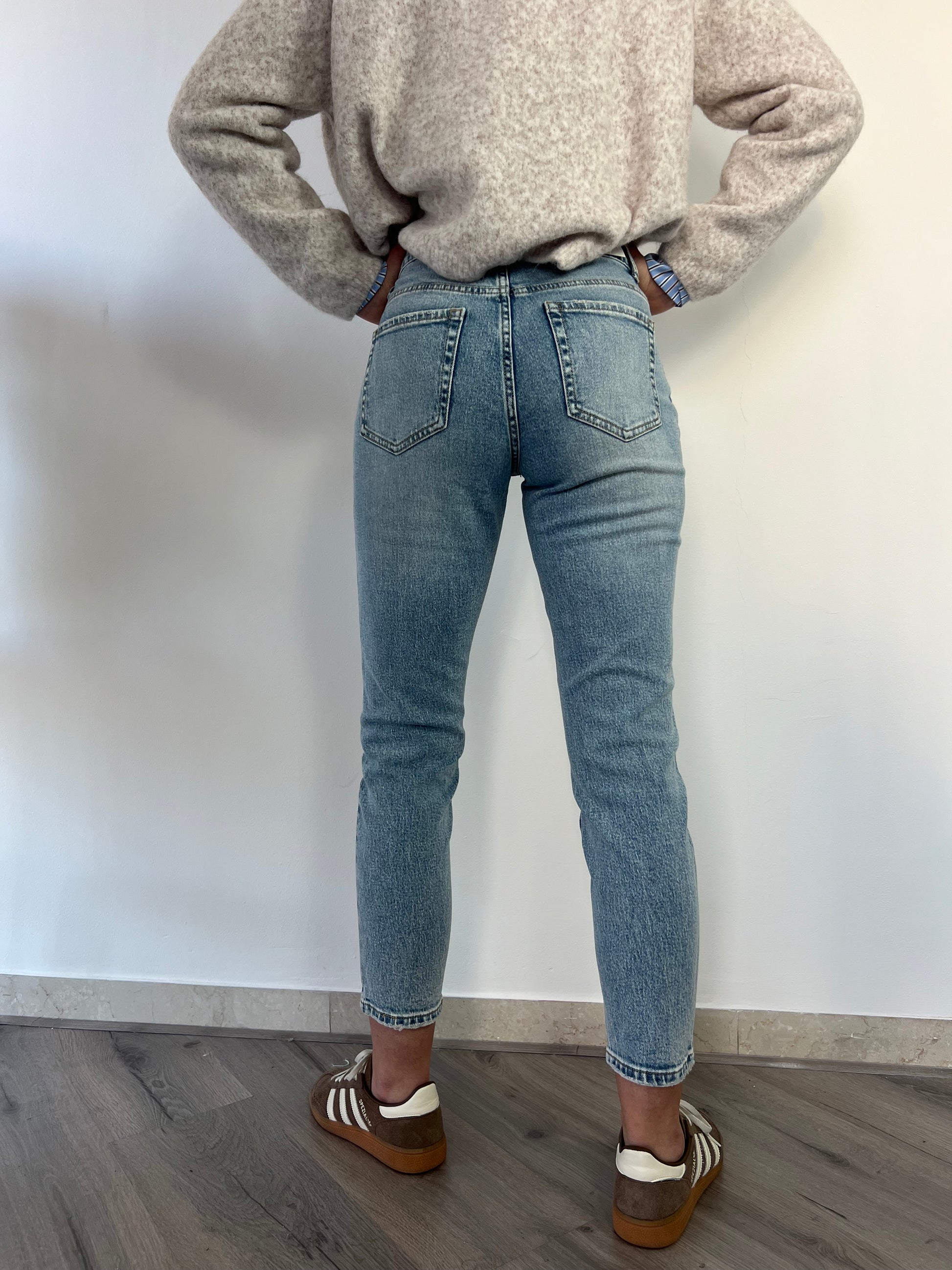I jeans skinny con vita medio alta offrono una vestibilità slim che si adatta perfettamente a diverse silhouette. Realizzati con un tessuto leggermente elasticizzato, garantiscono comfort e movimento. Ideali per chi cerca un look versatile e moderno, si integrano facilmente in vari stili di abbigliamento.