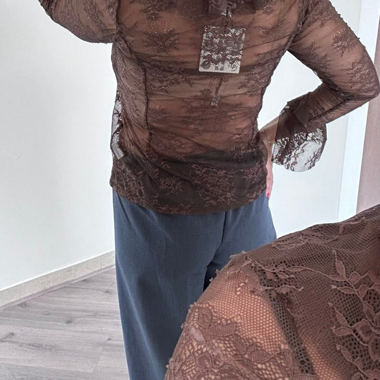 Aggiungi un tocco sexy al tuo guardaroba con la nostra magnifica maglia pizzo con balza. Realizzata in taglia unica, questa maglia è consigliata per le taglie 38-44 e presenta una balza sia nello scollo che nella manica. La sua trasparenza è perfetta per occasioni speciali, ma può diventare un capo versatile per il tuo look quotidiano con l'aggiunta di una canotta per eliminare la trasparenza. Aggiungi un tocco di eleganza e sensualità al tuo outfit con la maglia pizzo con balza.