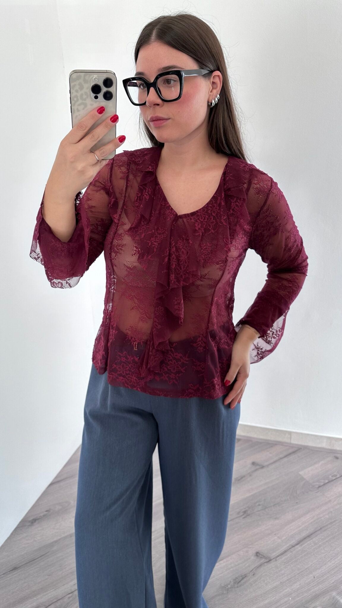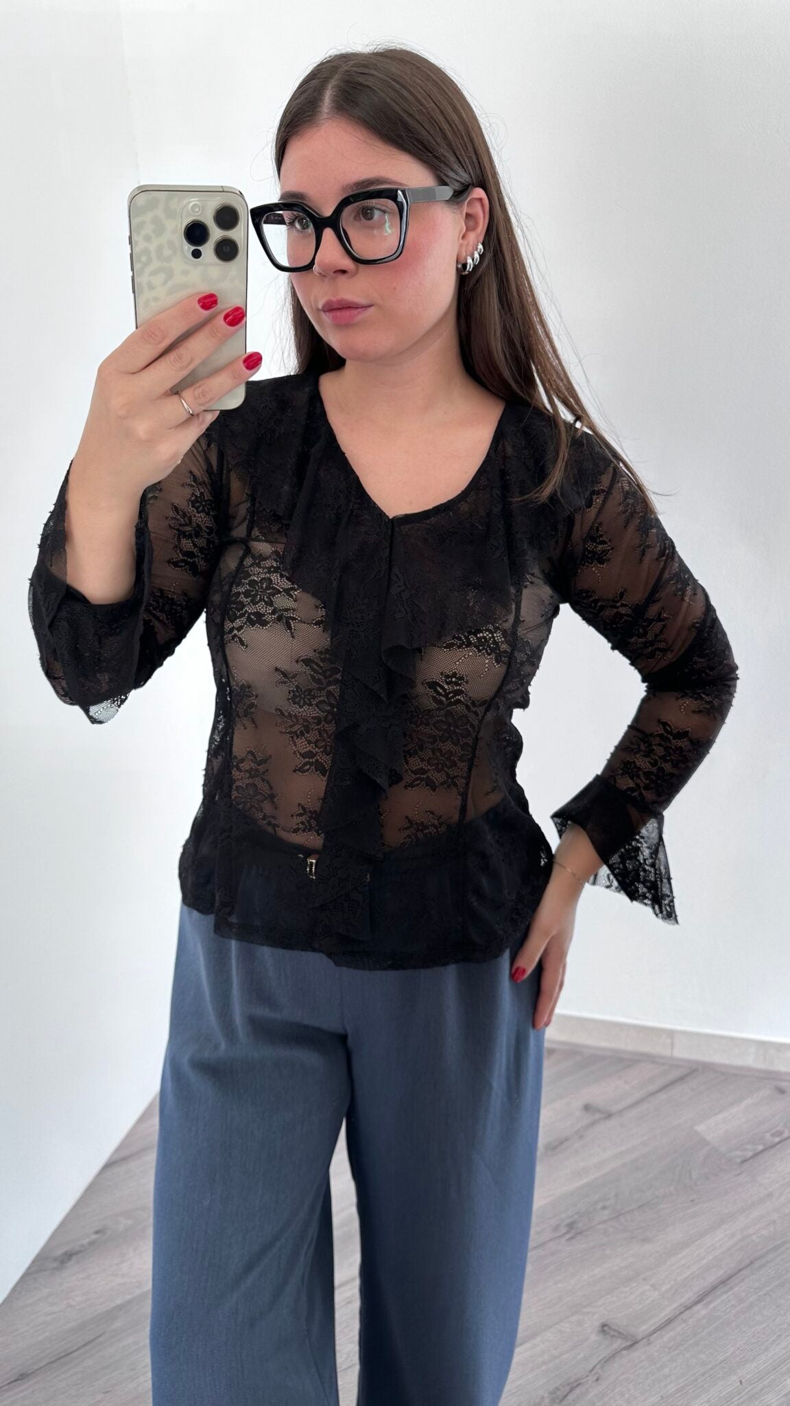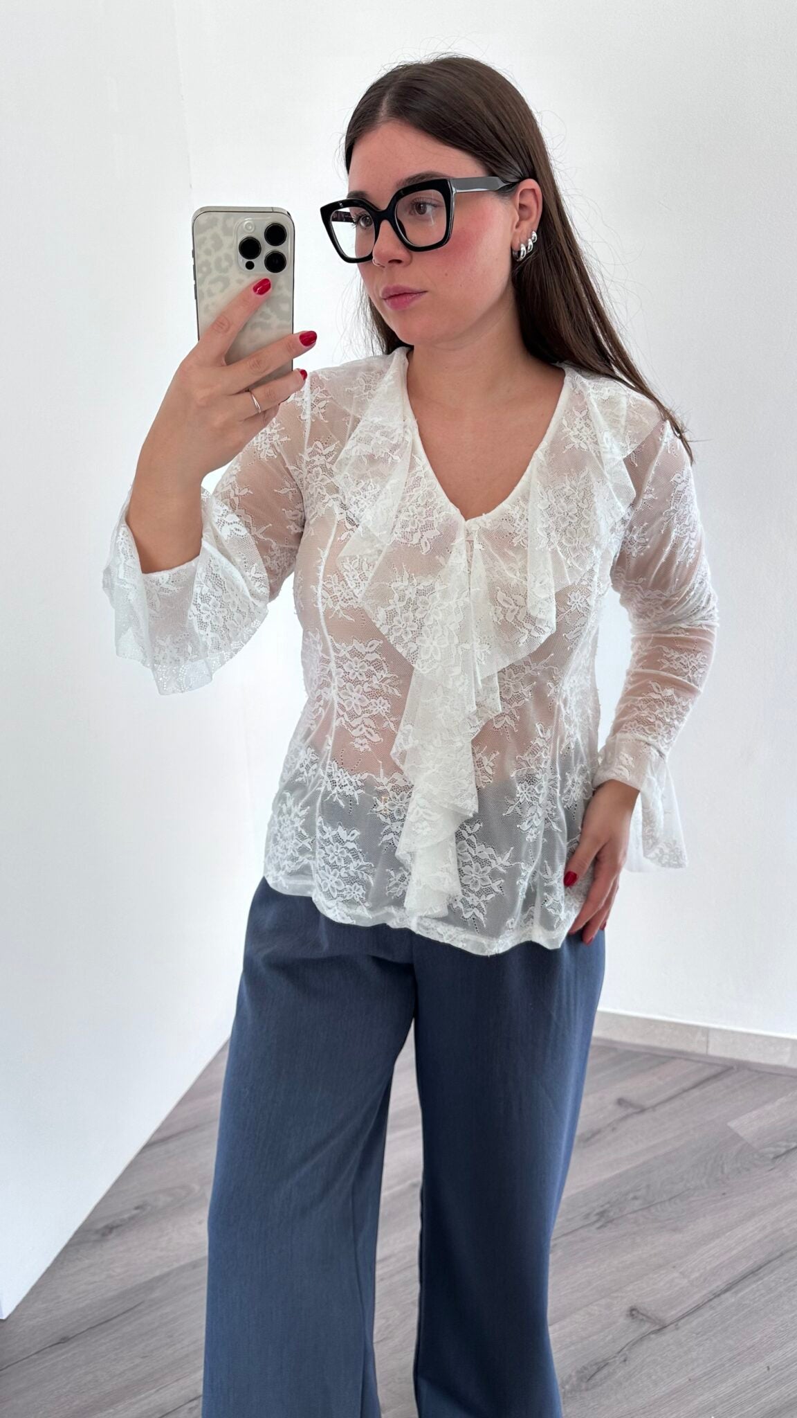 Maglia pizzo con balza