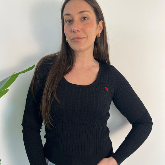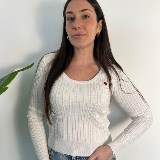 Maglioncino in morbida lana con dettagli a trecce e un delicato cuoricino ricamato sul petto. Perfetto per aggiungere calore e stile alle giornate più fredde. Taglia unica, ideale per una vestibilità comoda e versatile. Un capo essenziale che combina comfort e eleganza senza tempo.