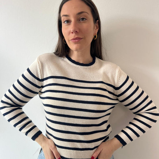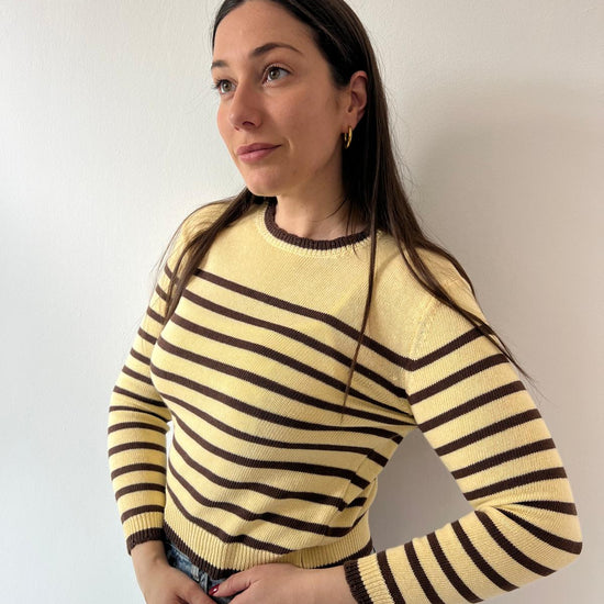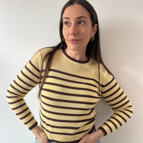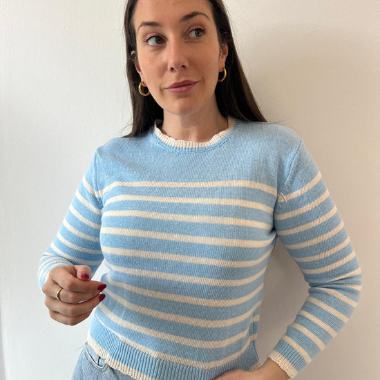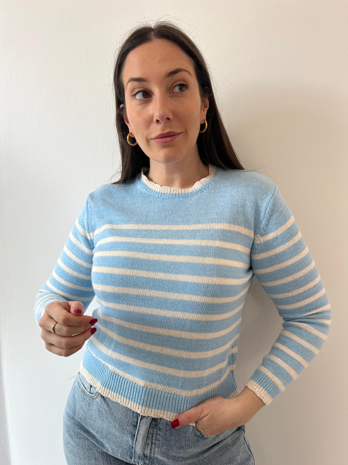 Maglioncino leggero in cotone con righe che catturano lo spirito della stagione. Perfetto per creare outfit daily chic e pop, si abbina facilmente a jeans, gonne o pantaloni per un look versatile e raffinato. Ideale per la primavera, comfort e stile in ogni occasione.