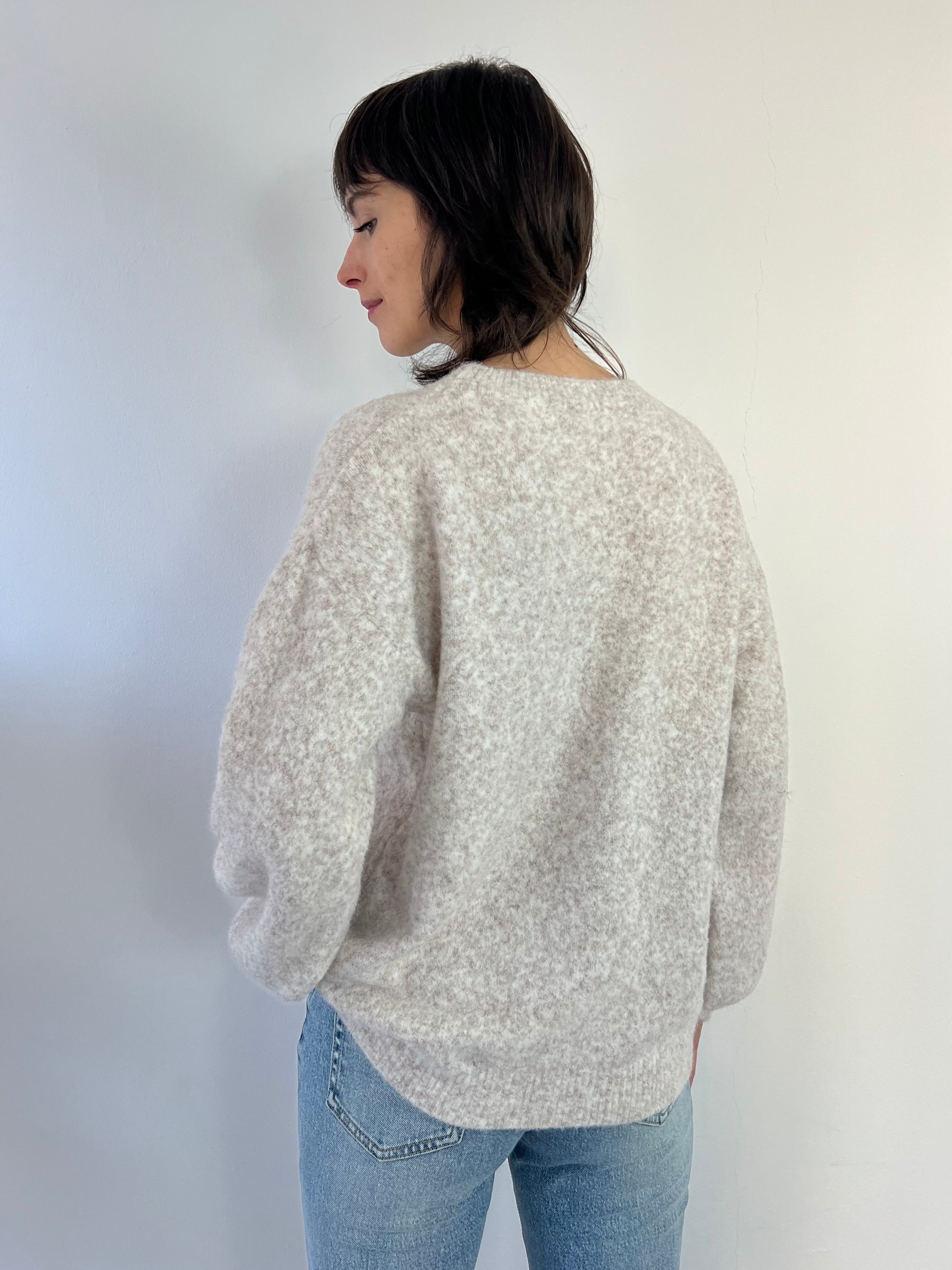Il Maglione Fluffy è realizzato in una combinazione di lana di alpaca e poliestere, garantendo un elevato livello di morbidezza e comfort. La vestibilità over e la taglia unica lo rendono adatto a diverse conformazioni fisiche, offrendo calore e versatilità per il tuo guardaroba.