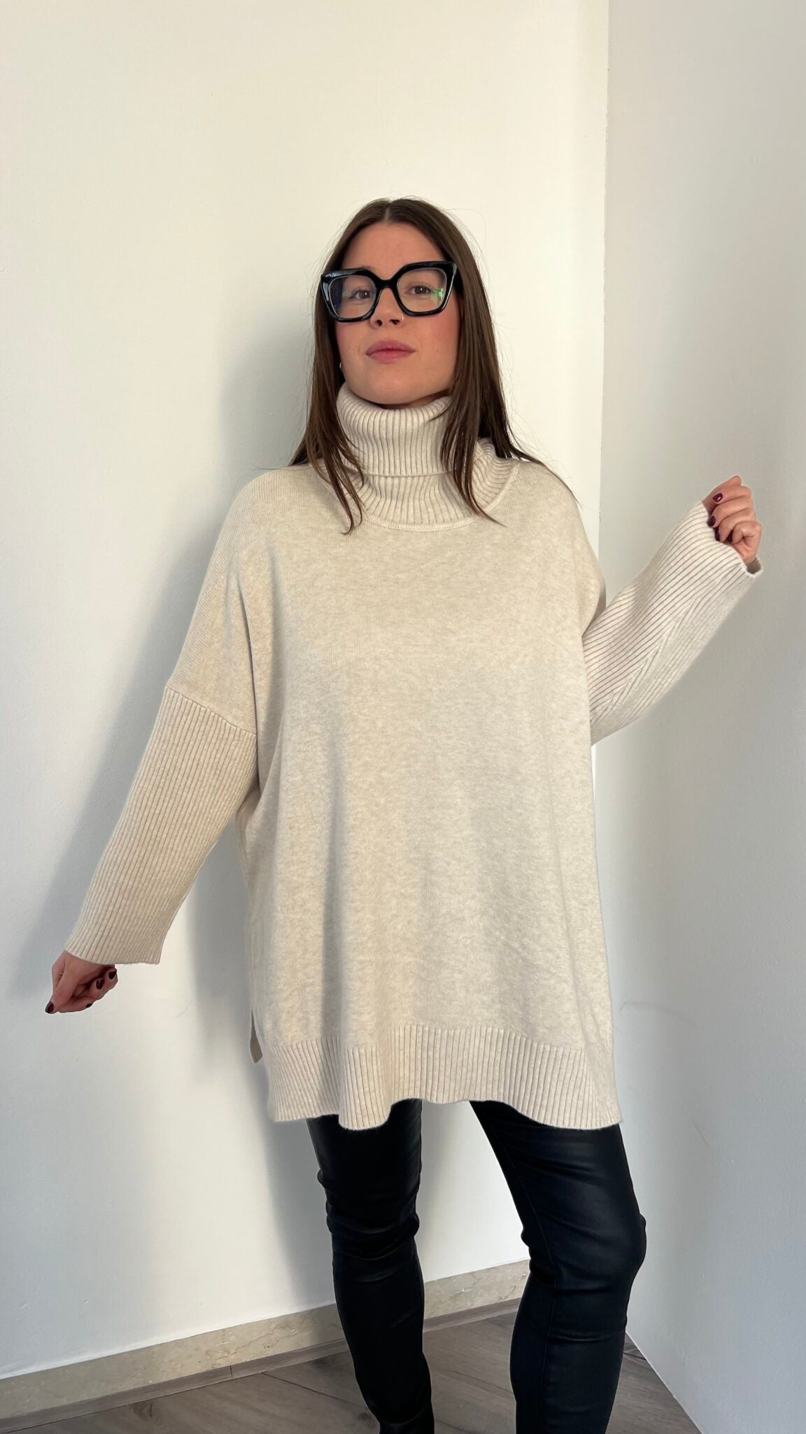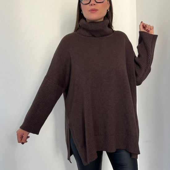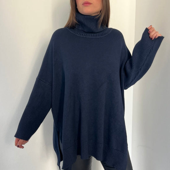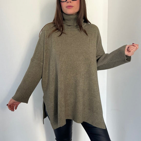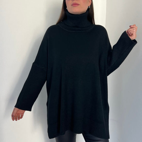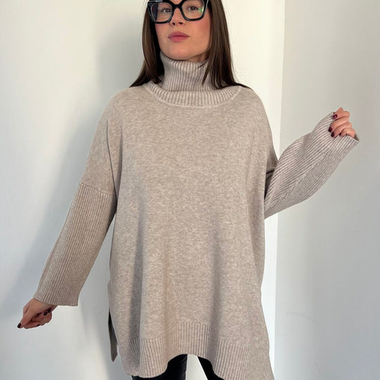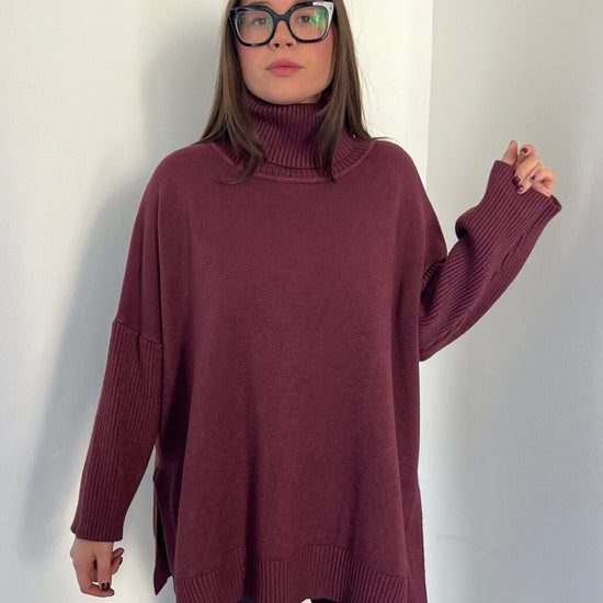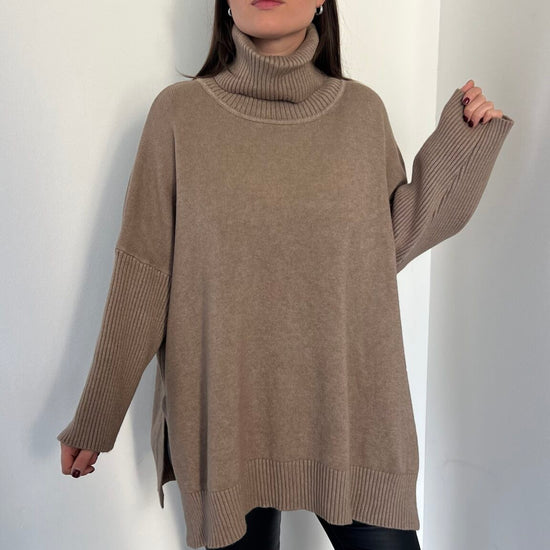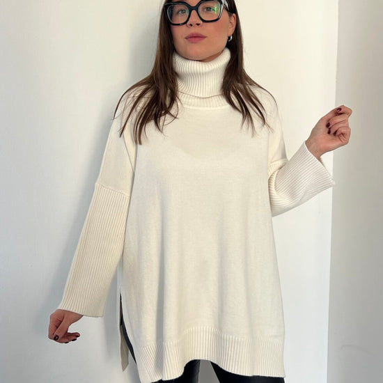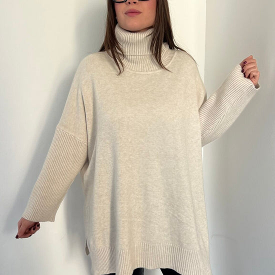 Maglione lungo over collo alto
