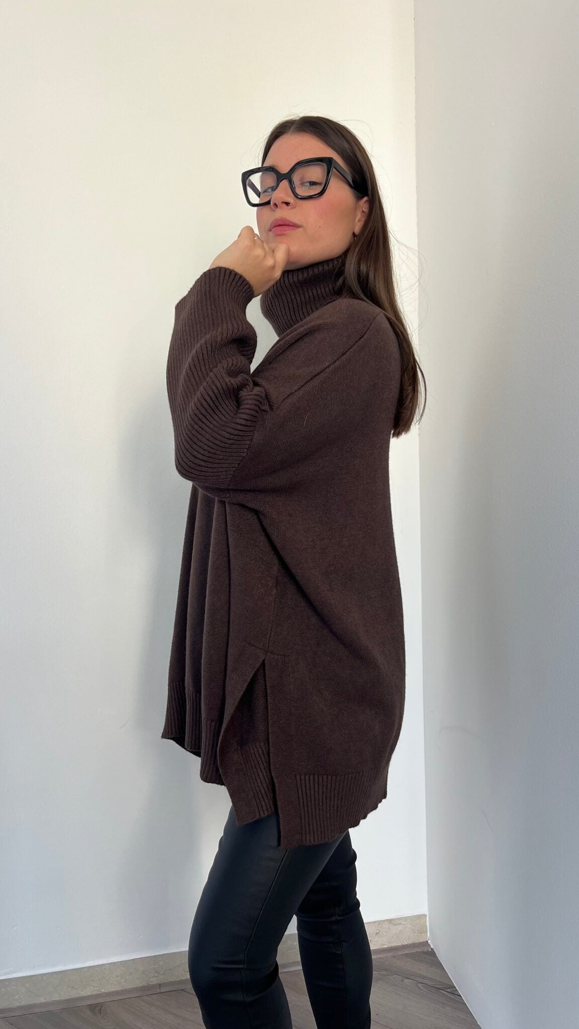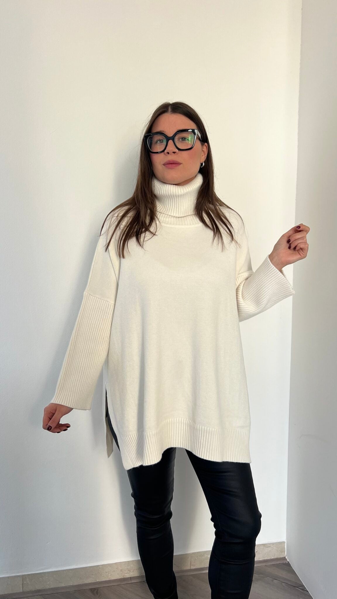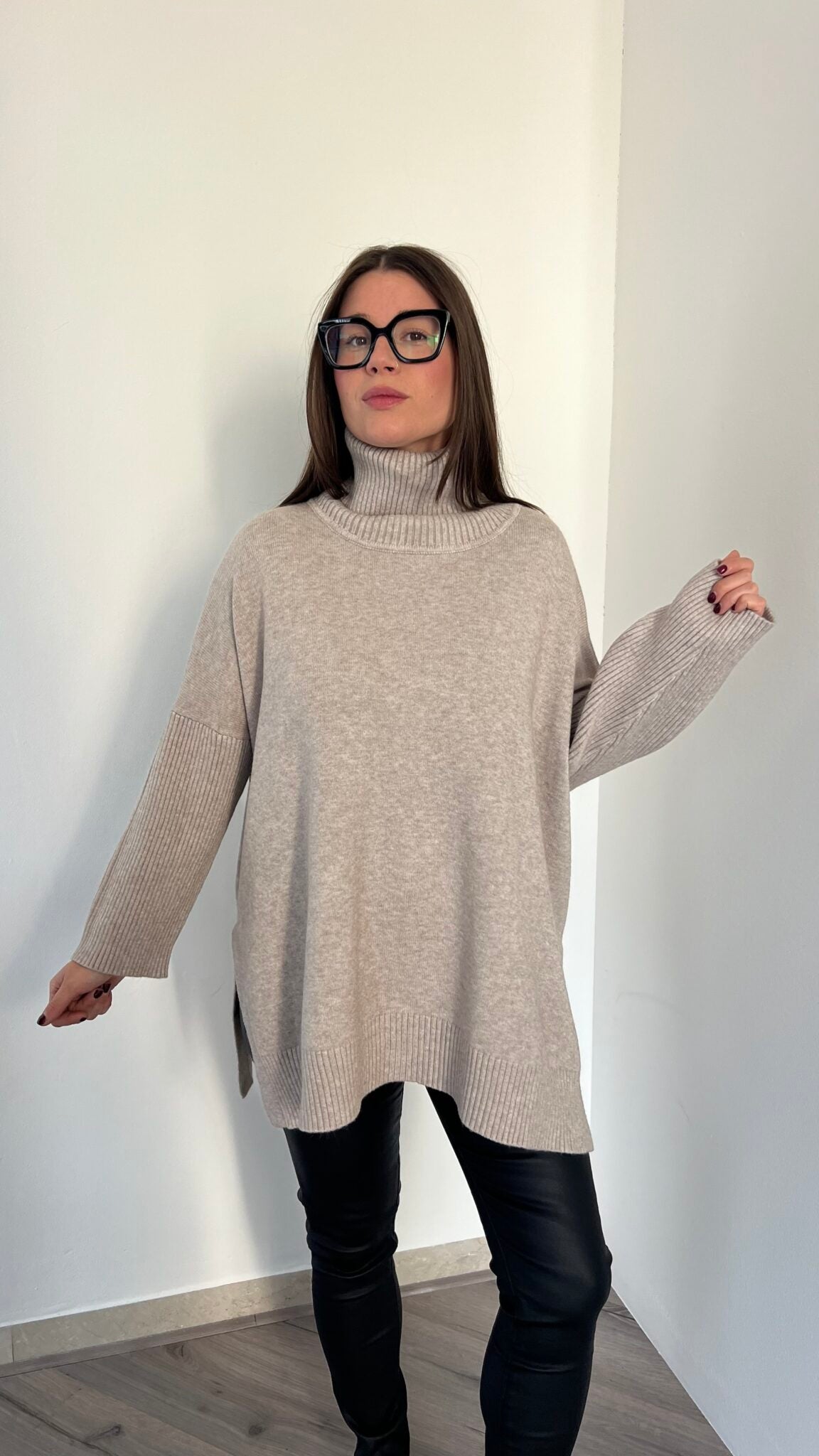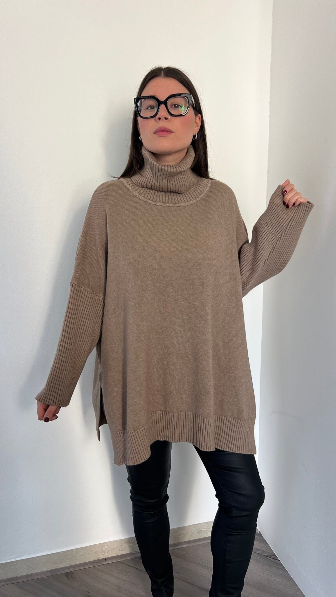 Maglione lungo over collo alto