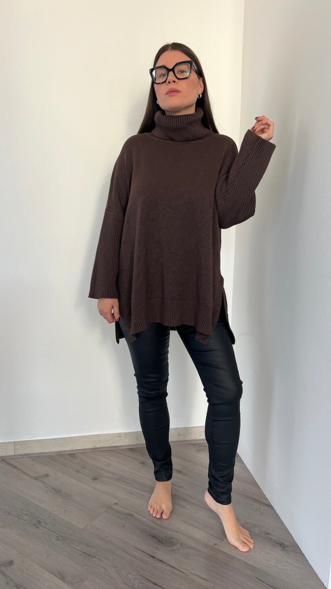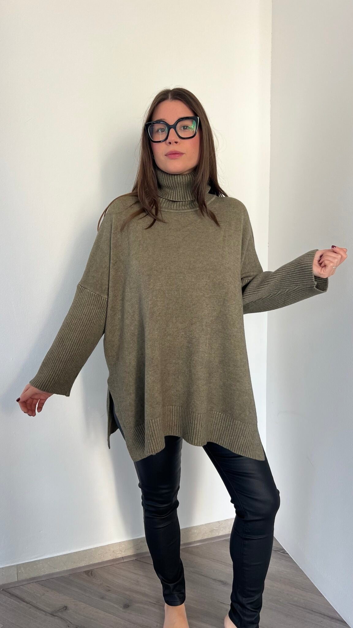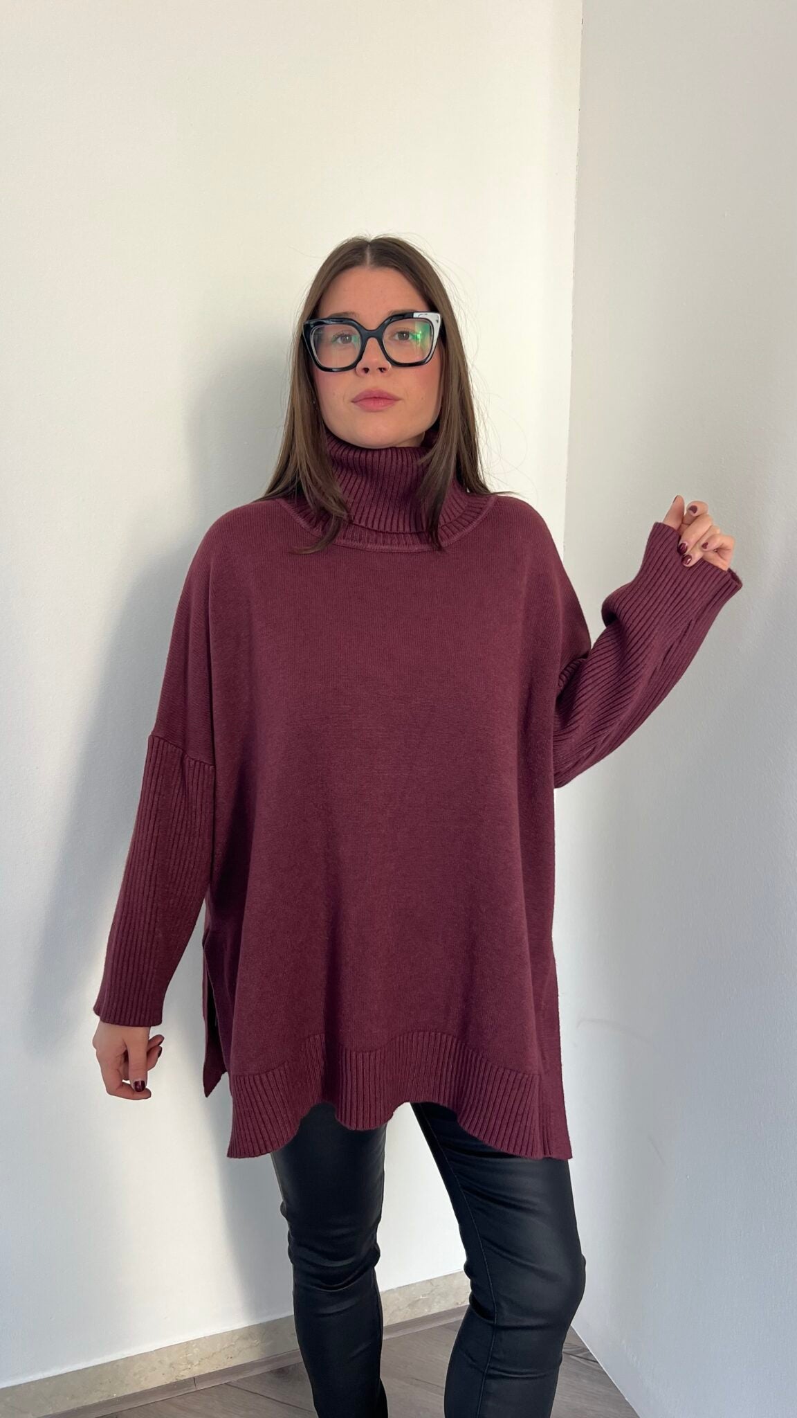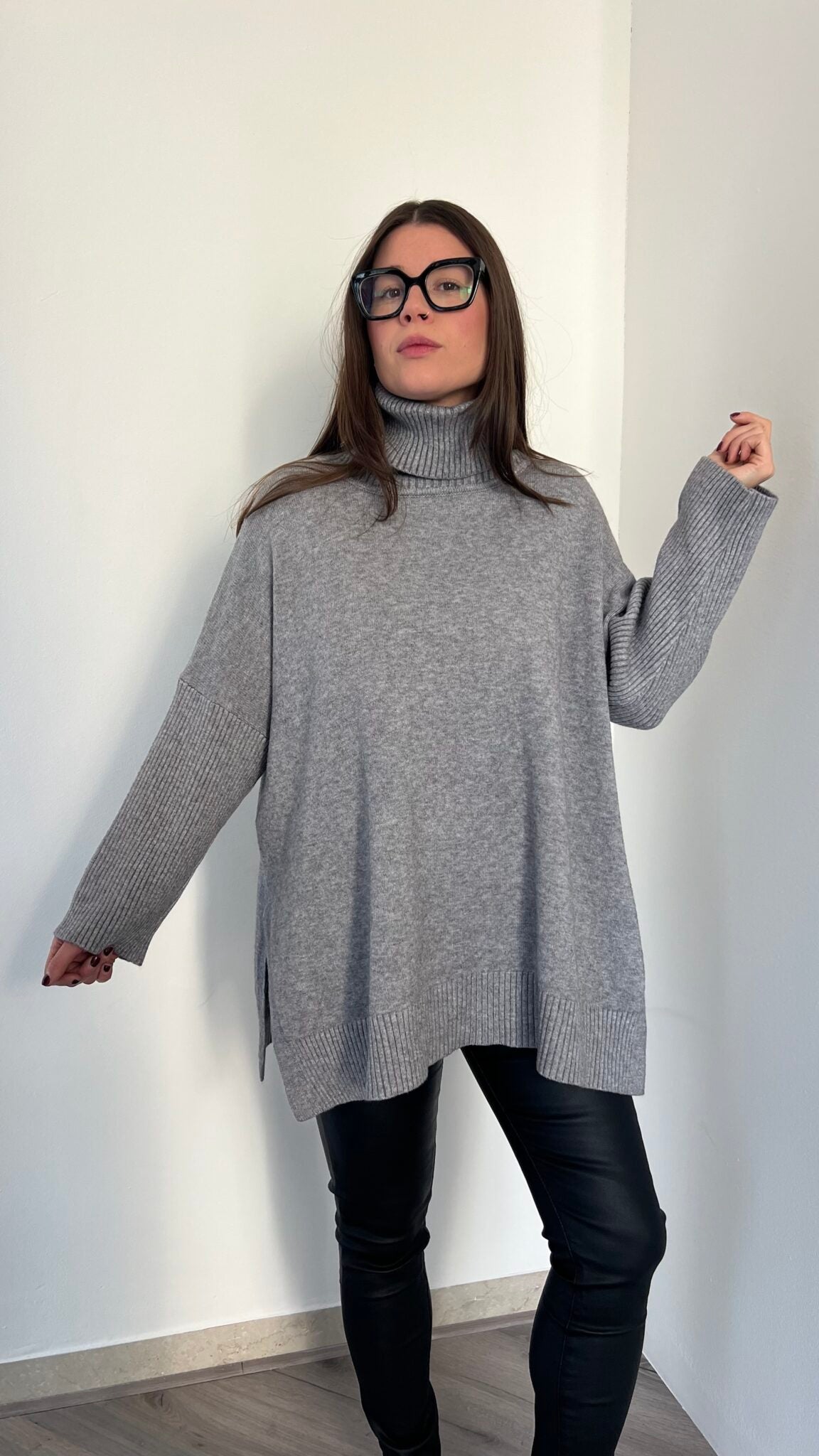 Maglione lungo over collo alto