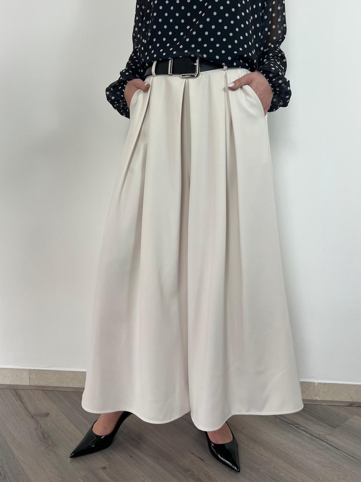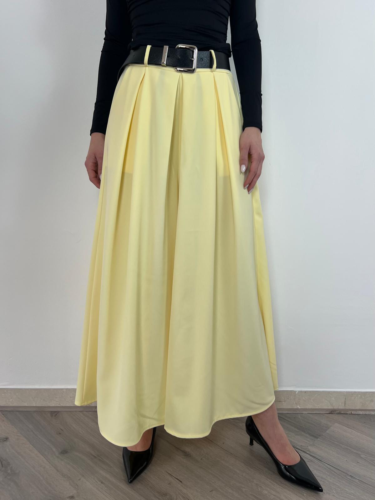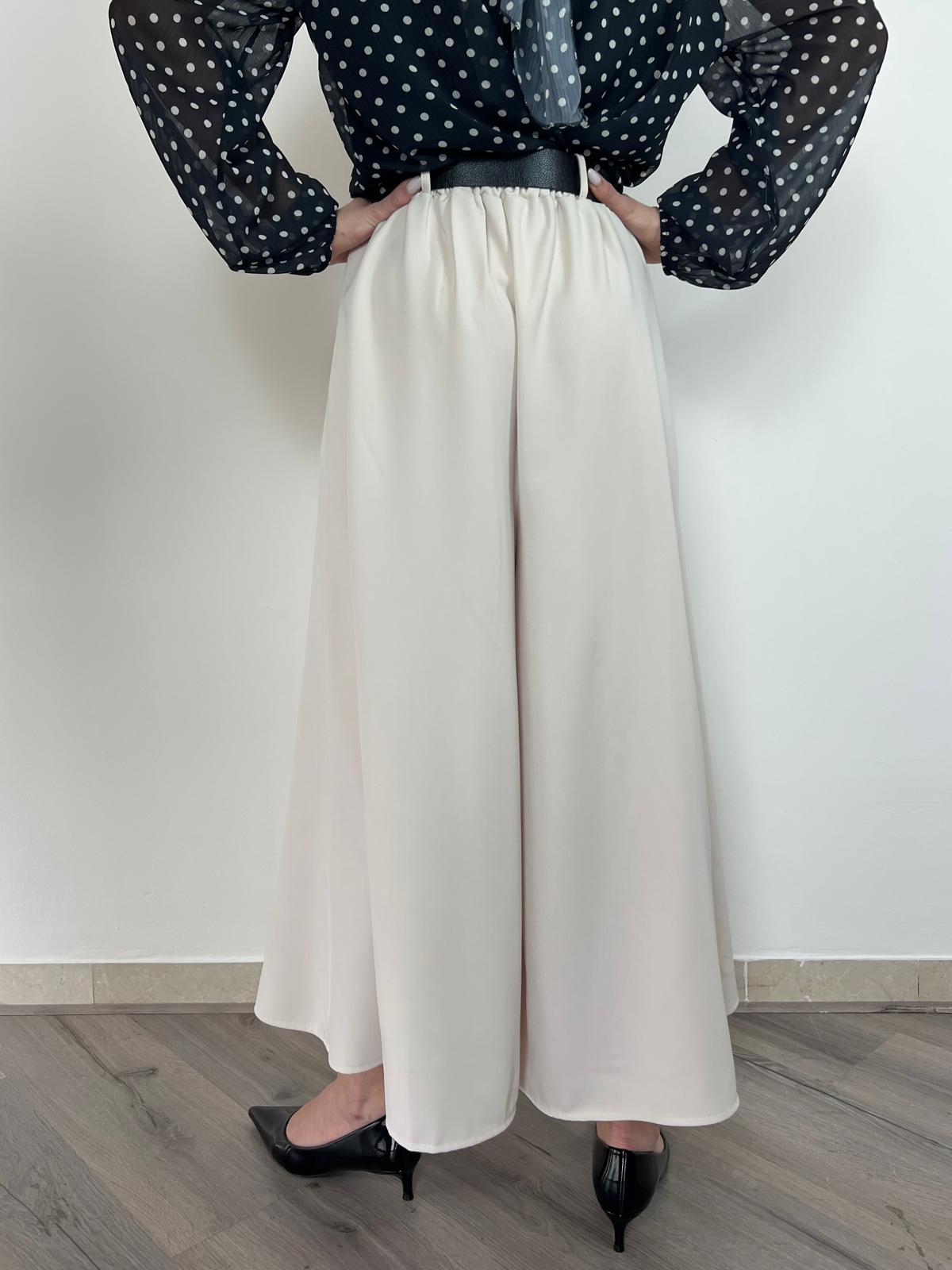 Pantaloni ampi e sofisticati che trasformano il tuo guardaroba. Le pence frontali creano un movimento elegante e fluido, perfetto per un look raffinato sia di giorno che per occasioni speciali. Il capo perfetto per comfort e libertà di movimento, con cintura in vita che assicura una vestibilità impeccabile. Disponibili in cinque tonalità versatili: verde menta, giallo, rosa, azzurro, bianco e nero. Un capo essenziale che unisce eleganza sobria e praticità. Vestibilità 40-46