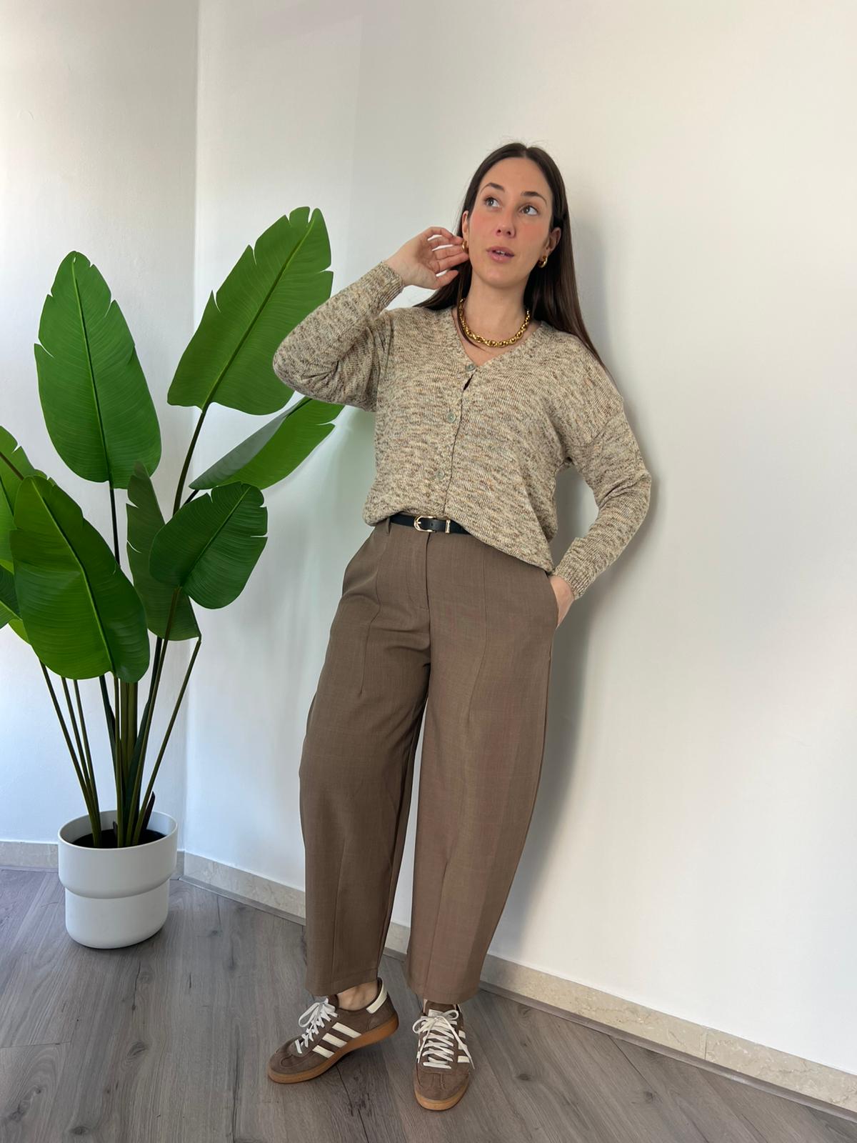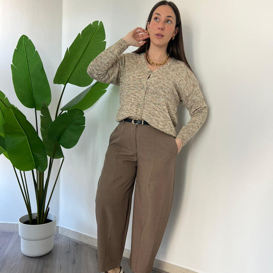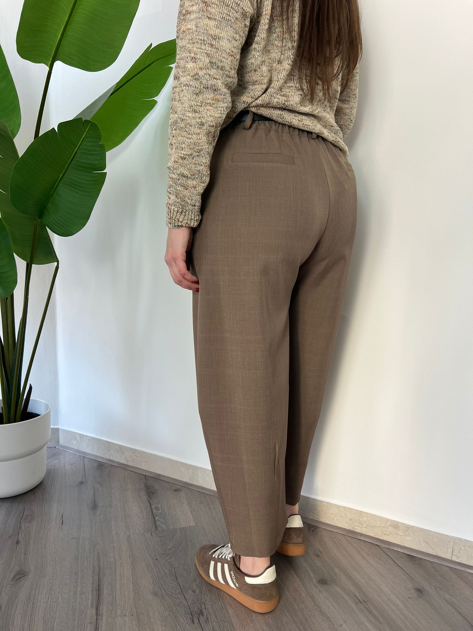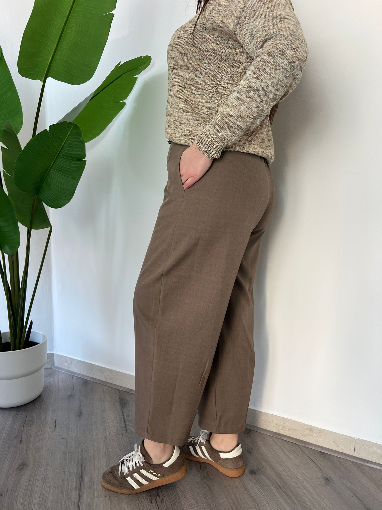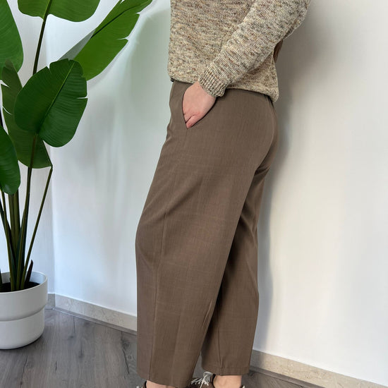Pantalone dal taglio ampio e contemporaneo con linea morbida e lunghezza cropped. Il design minimal valorizza la silhouette mantenendo comfort Vita pulita davanti e leggermente elasticizzata dietro per una vestibilità confortevole e versatile. Perfetto per look casual chic con sneaker o per abbinamenti eleganti con blazer e camicie. Disponibile dalle taglie S (40) alla L (44)