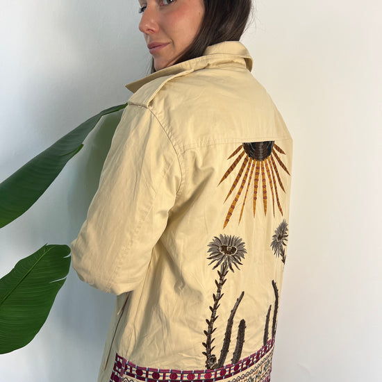 Scopri il parka con ricami, un capo unico che combina stile e funzionalità! Adatto dalle taglie 38 alla 44, offre pratiche tasche e un look casual perfetto per le mezze stagioni. I suoi ricami boho sulla schiena aggiungono un tocco di tendenza al tuo guardaroba. Fai brillare la tua personalità!