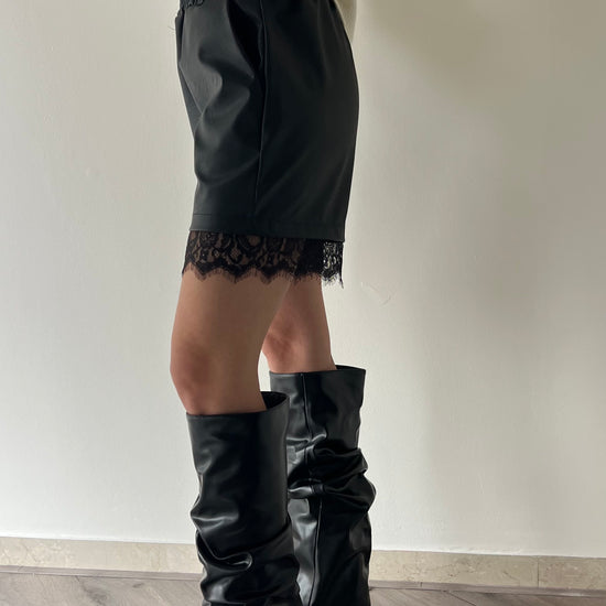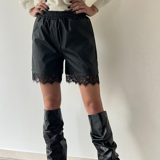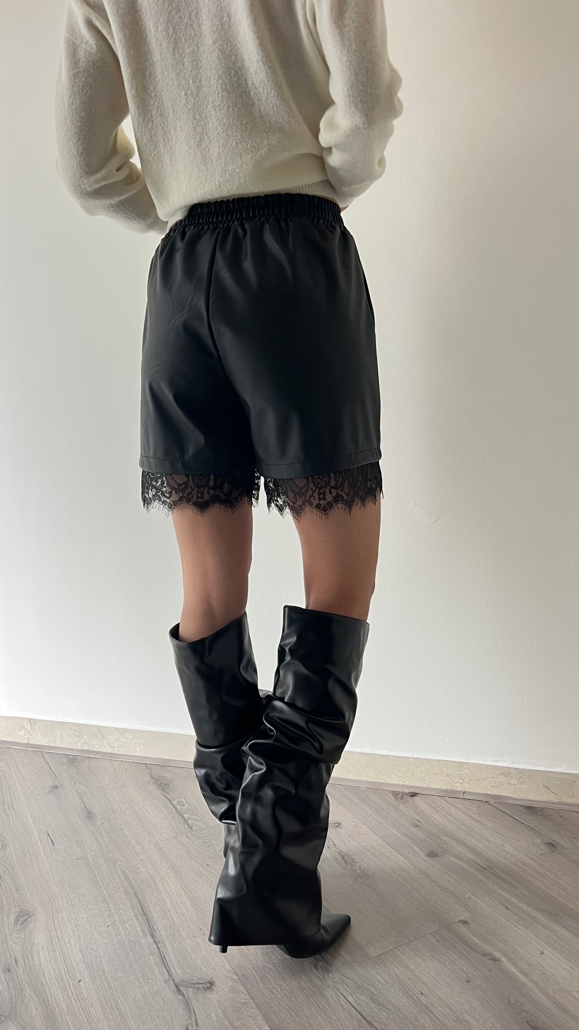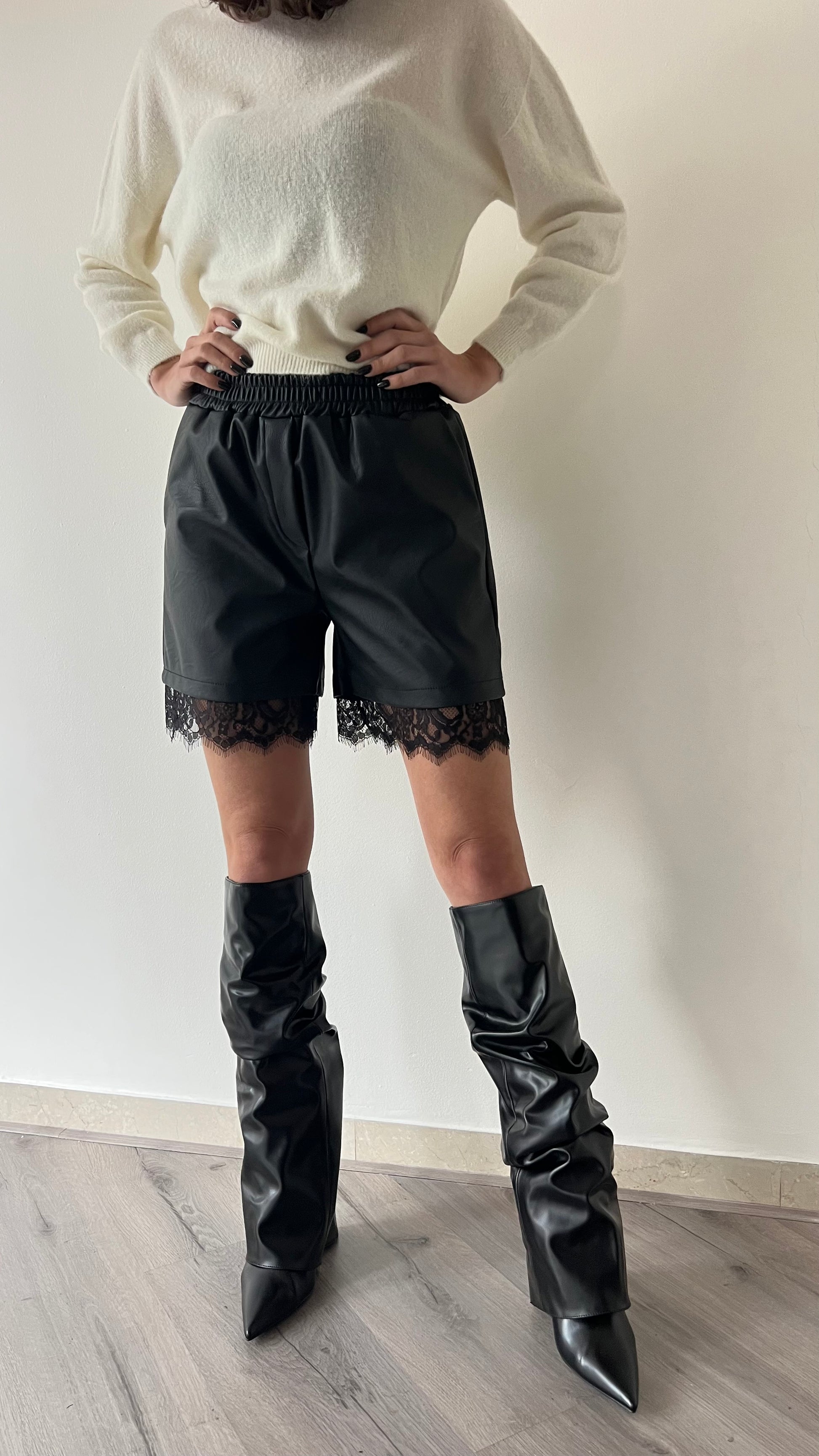 Questi shorts in simil pelle e pizzo sono un must-have per la stagione. Con una vestibilità dalla taglia 38 alla 42 e una vita elasticizzata, offrono comfort e stile. Perfetti per qualsiasi occasione, saranno sicuramente un'aggiunta versatile al tuo guardaroba.