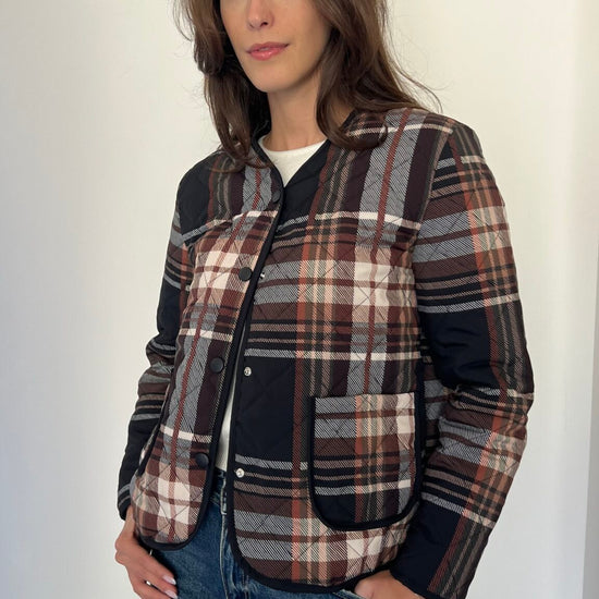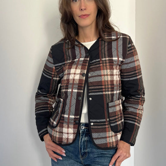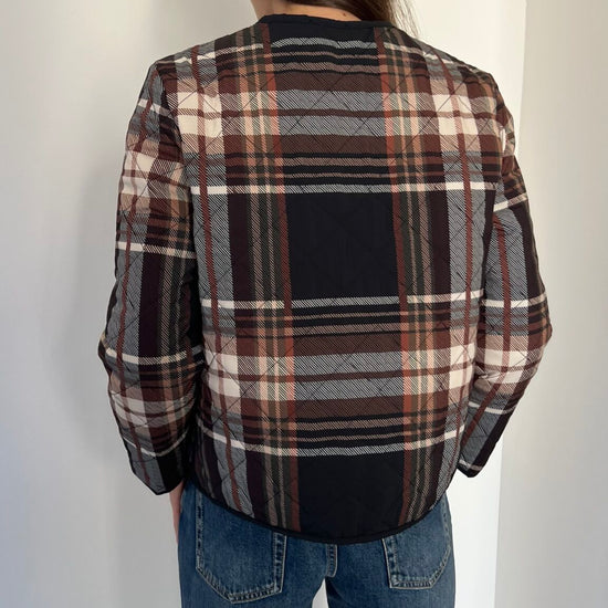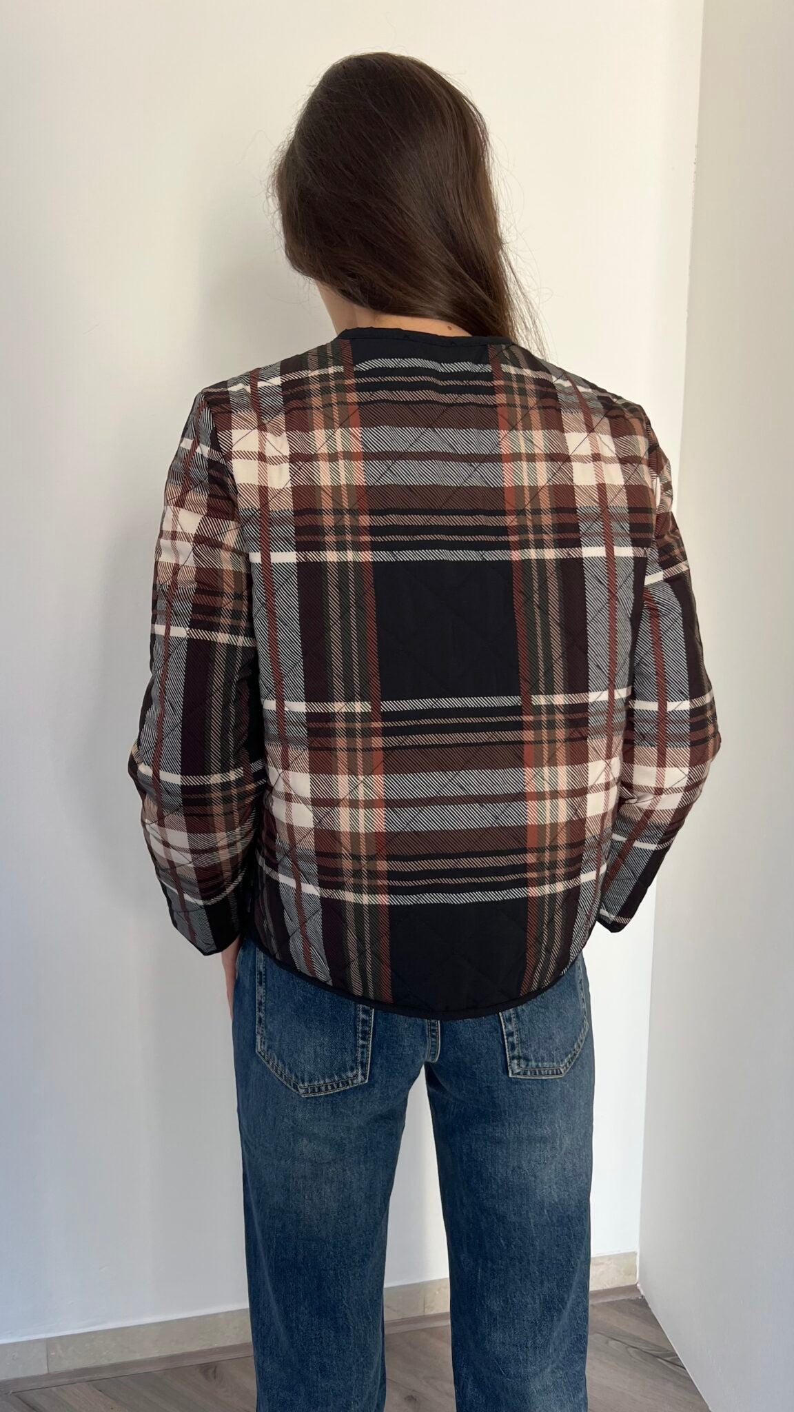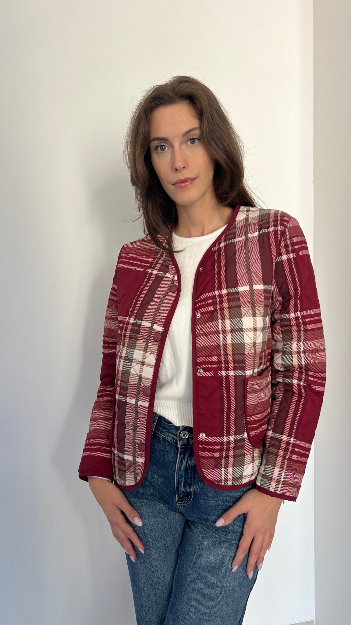 Il Trapuntino check è disponibile nella taglia unica che veste dalla 38 alla 46. Perfetto per la mezza stagione e ideale da indossare sotto un gilet in eco pelliccia durante l’inverno. La giacca trapuntata offre calore e stile.