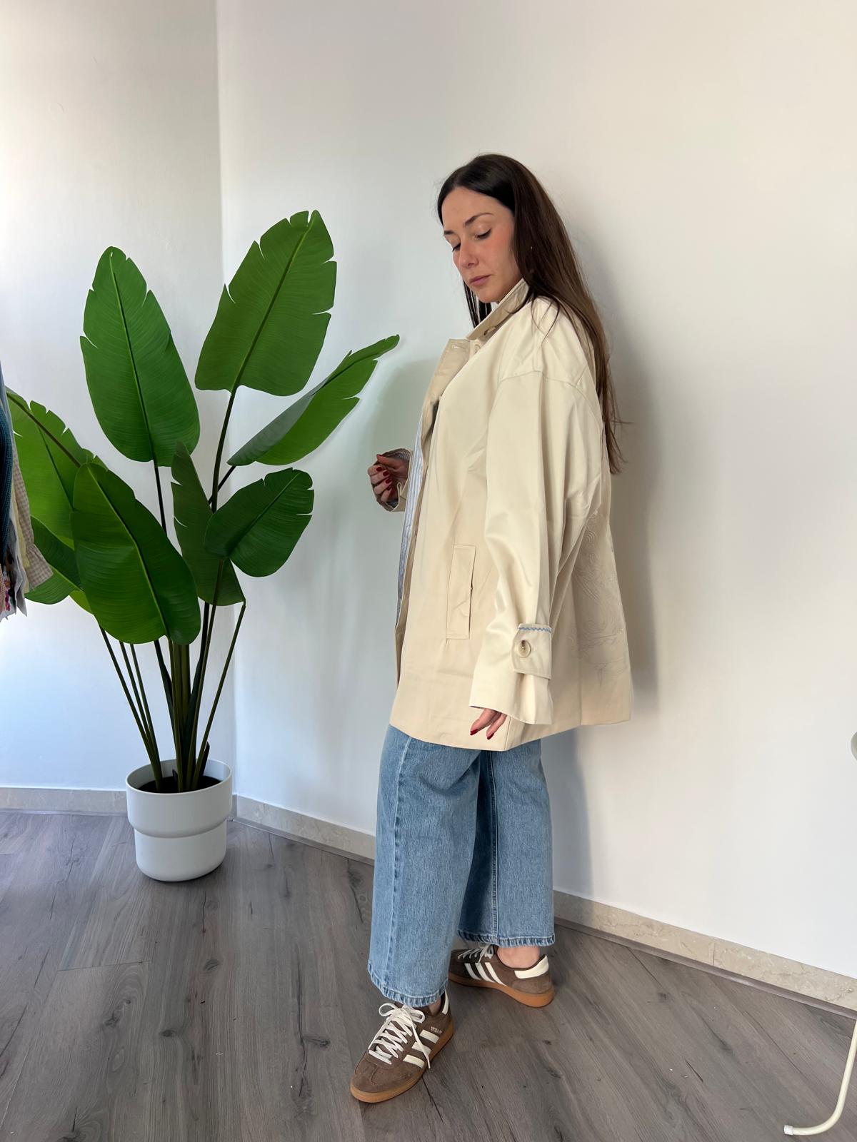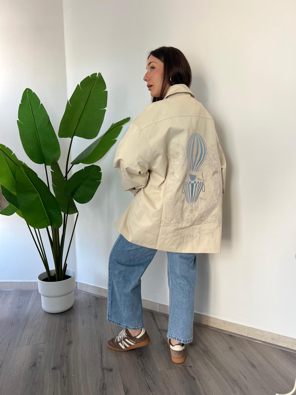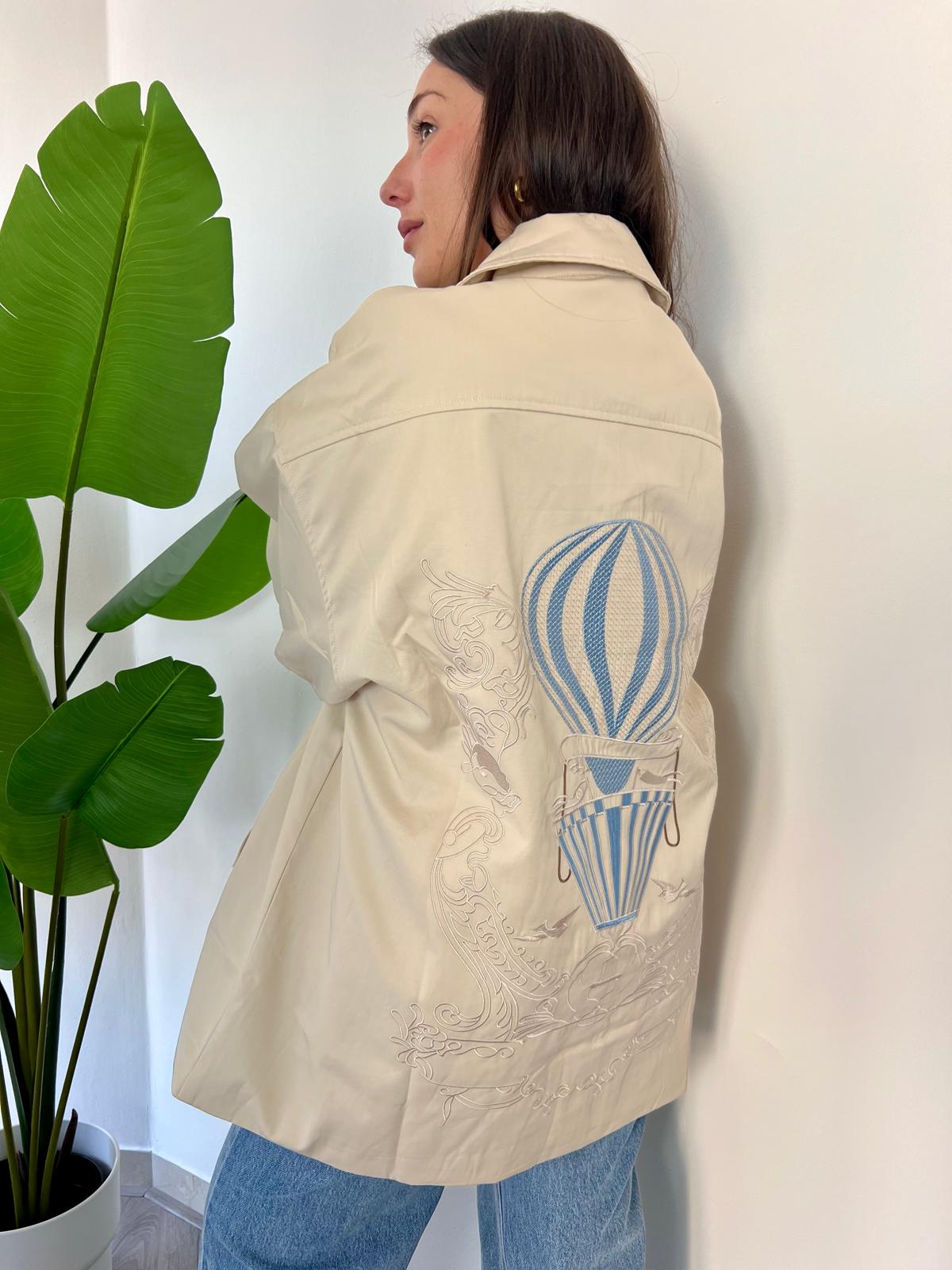 Scopri il nostro Trench Mongolfiera, il capo perfetto per la stagione primaverile., questo trench offre una vestibilità comoda e generosa che si adatta a ogni silhouette. Il dettaglio ricamato di una mongolfiera sul retro aggiunge un tocco di originalità e fantasia al design classico. Ideale per chi cerca un capo versatile che unisce eleganza tradizionale e personalità unica. Un must-have per il vostro guardaroba di primavera. Veste dalla 42 alla 50