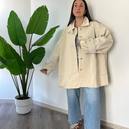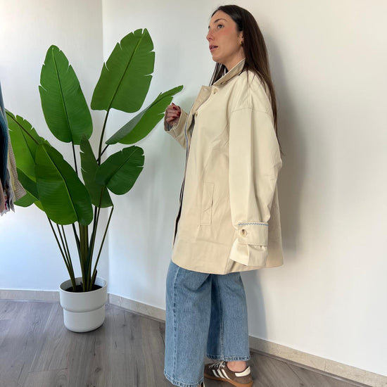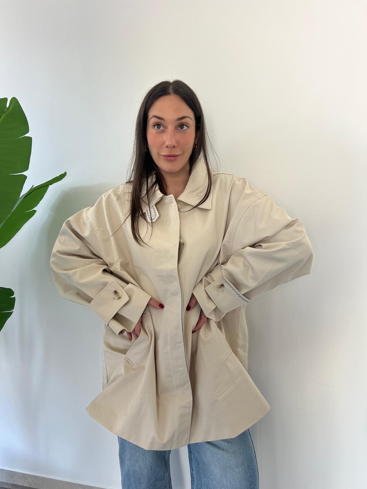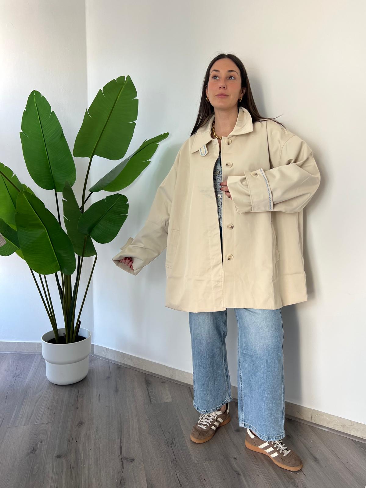Scopri il nostro Trench Mongolfiera, il capo perfetto per la stagione primaverile., questo trench offre una vestibilità comoda e generosa che si adatta a ogni silhouette. Il dettaglio ricamato di una mongolfiera sul retro aggiunge un tocco di originalità e fantasia al design classico. Ideale per chi cerca un capo versatile che unisce eleganza tradizionale e personalità unica. Un must-have per il vostro guardaroba di primavera. Veste dalla 42 alla 50