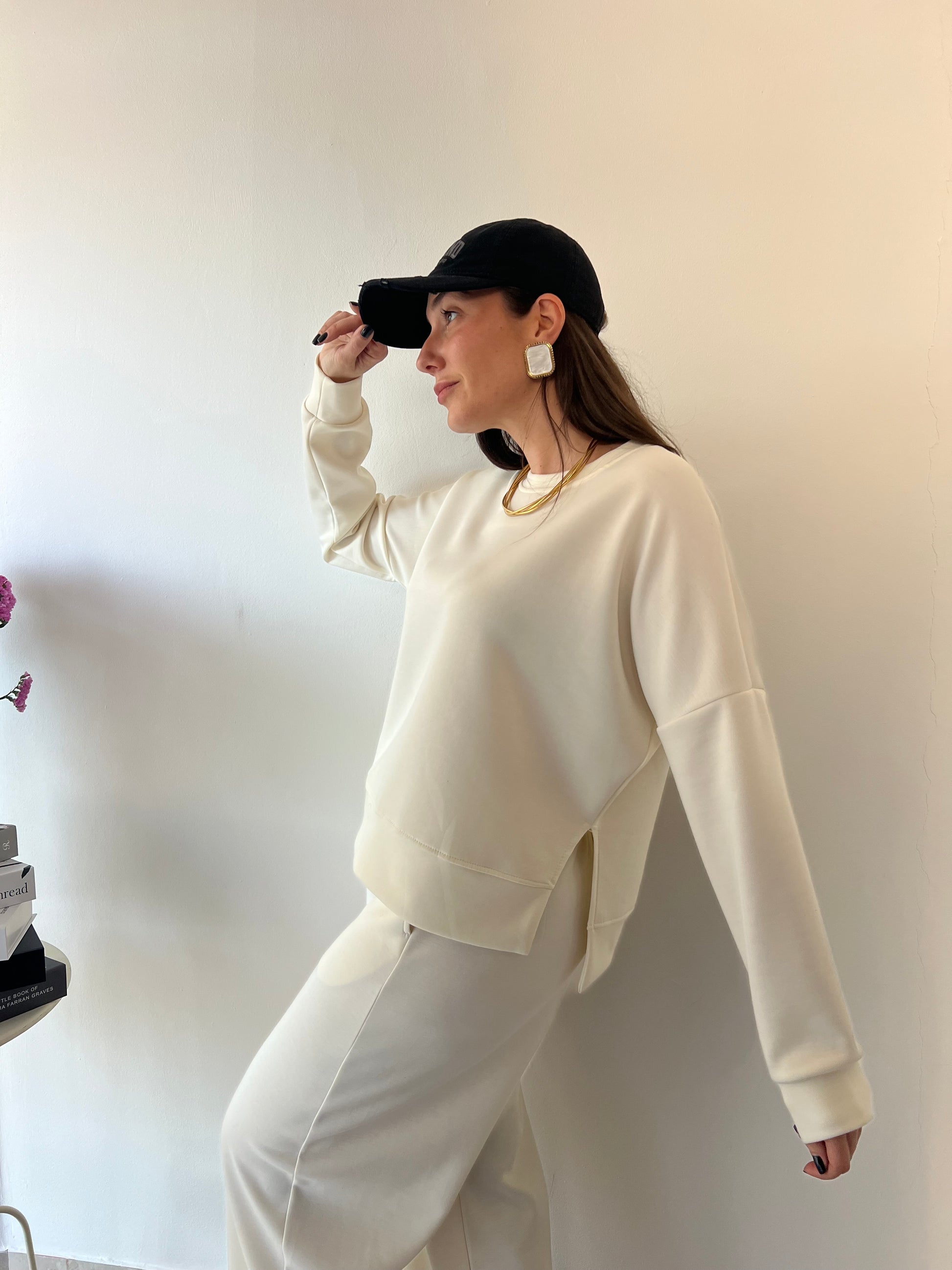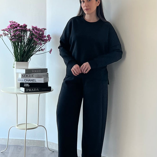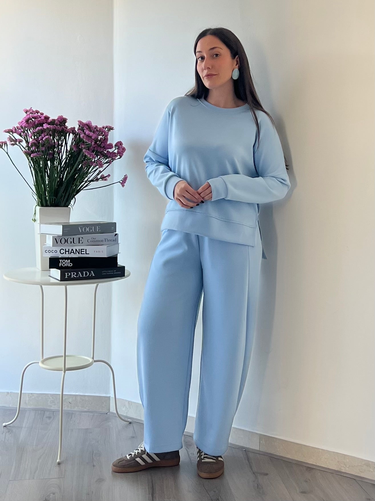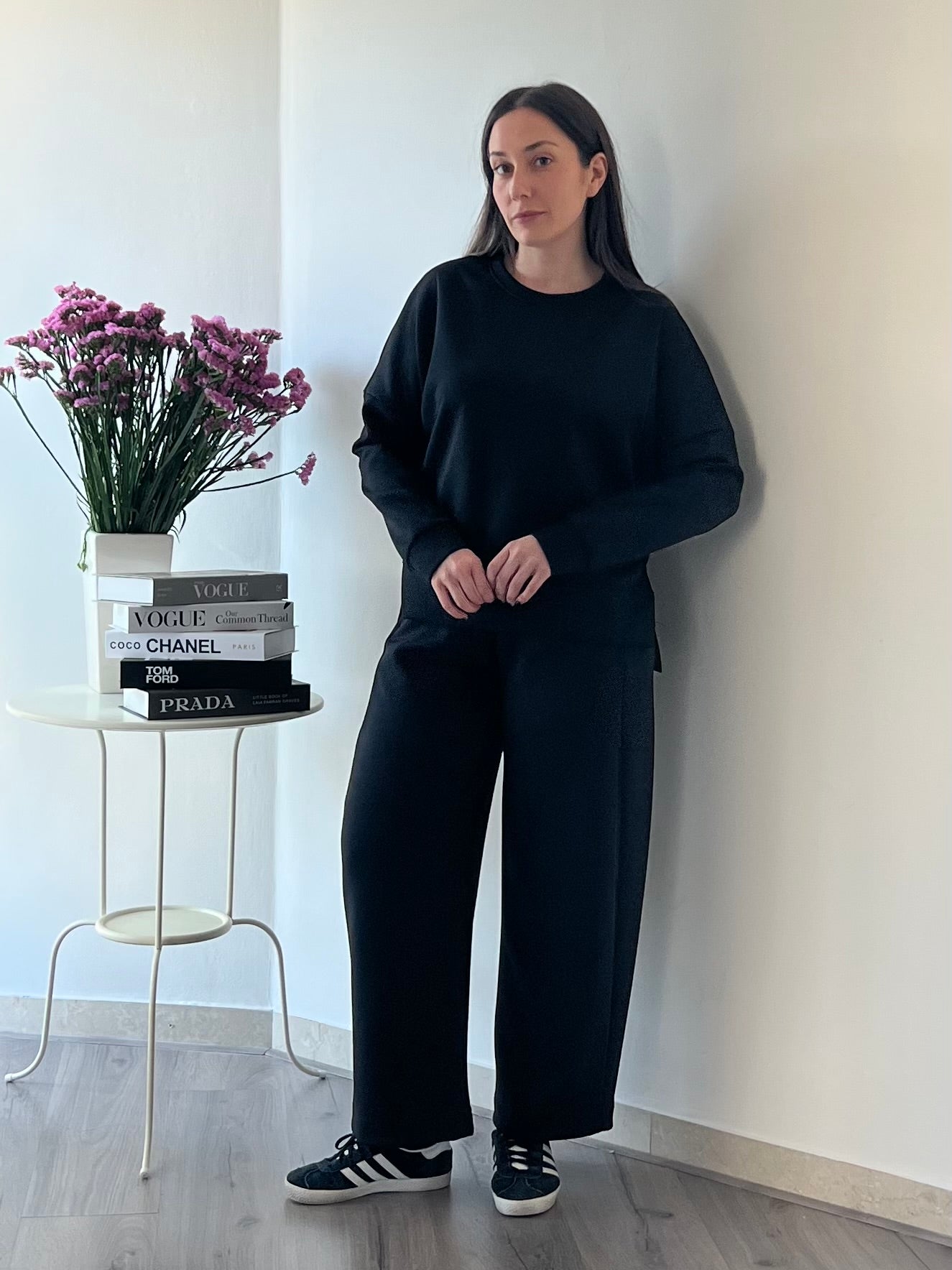La Tuta Ludovica è una soluzione versatile per il guardaroba, realizzata in un mix di 50% viscosa, poliestere ed elastan. La taglia unica si adatta a diverse conformazioni, con una vita elastica che offre comfort. I spacchi laterali nella felpa conferiscono un tocco di stile e praticità, rendendola ideale per chi desidera un look alla moda senza compromettere il comfort. È consigliata per taglie da 38 a 46, permettendo di scegliere l'effetto desiderato.